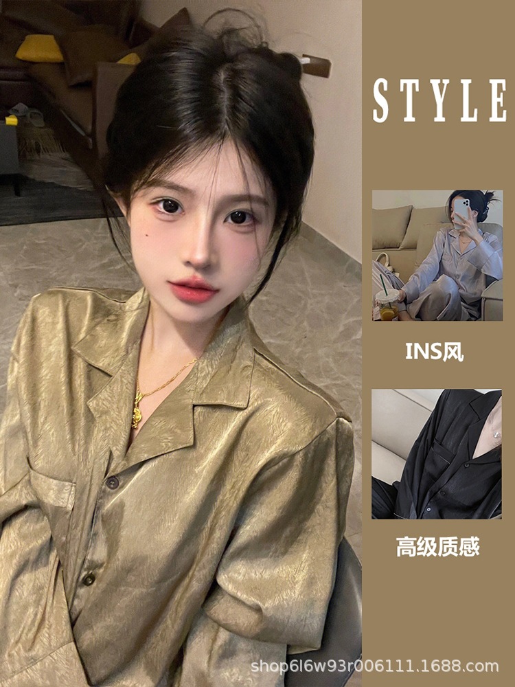 프랑스 최고급 잠옷 여성 봄 · 가을 얼음 실크 얇은 트윌 새로운 라이브 폭발 시뮬레이션 실크 세트 한국어스토어 가기