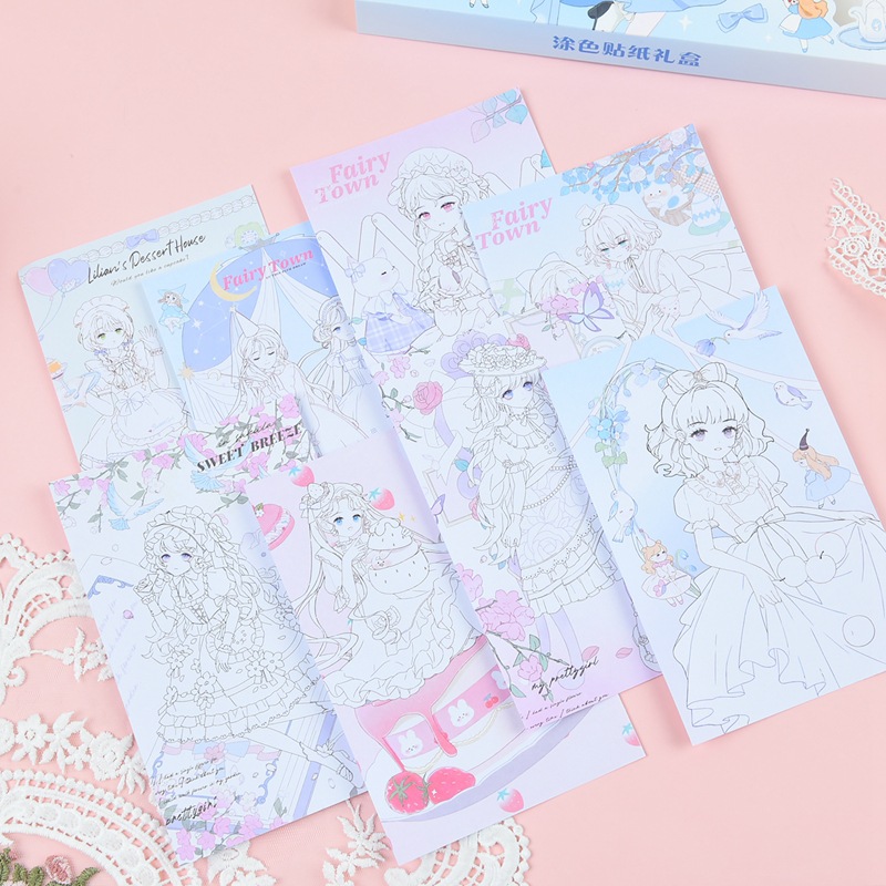 색칠 스티커 선물 상자 에밀리의 동화 마을 색칠 변경 책 상자 스티커 수제 DIY 색칠 그림