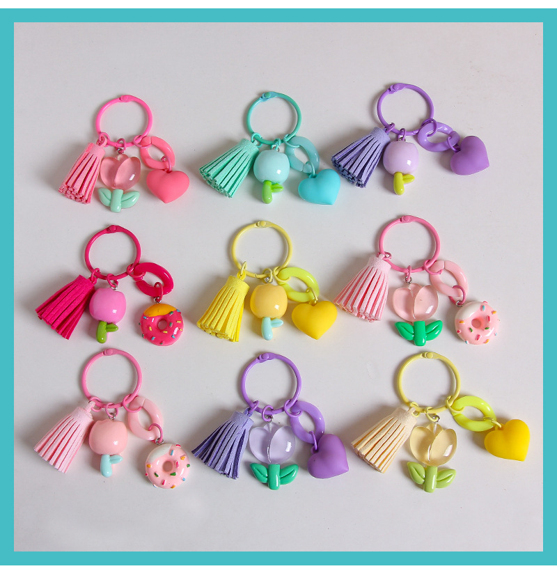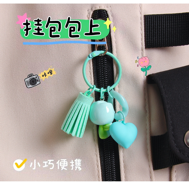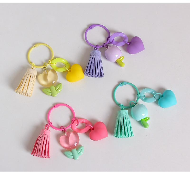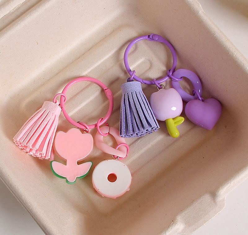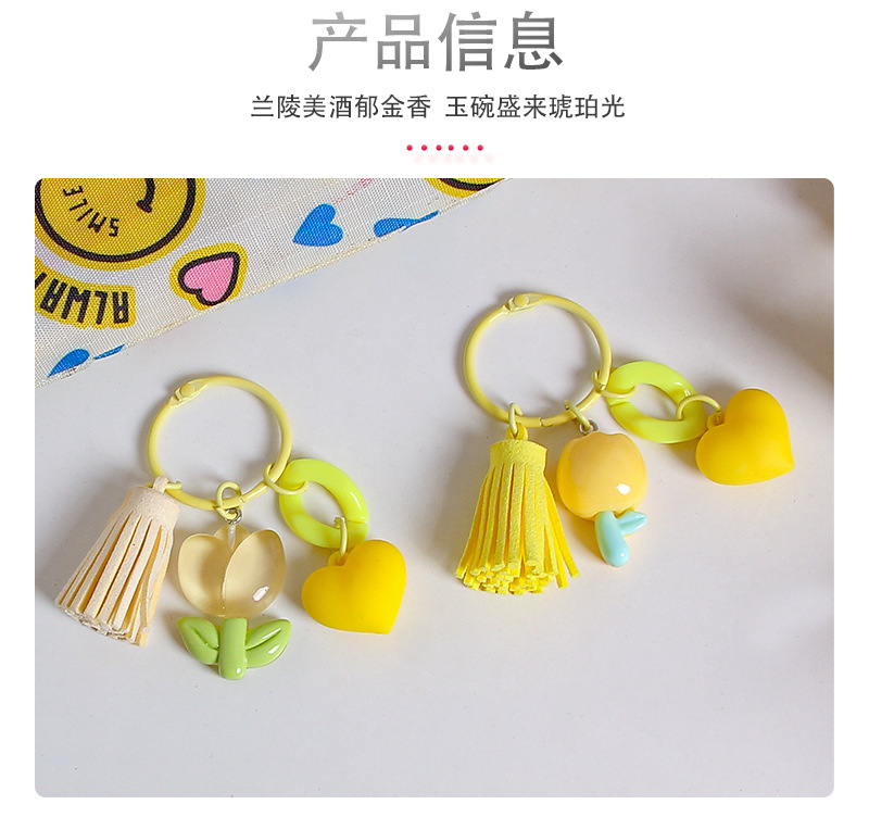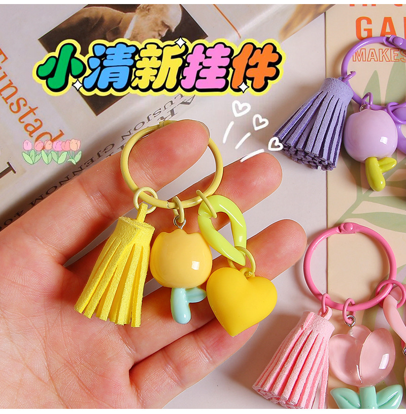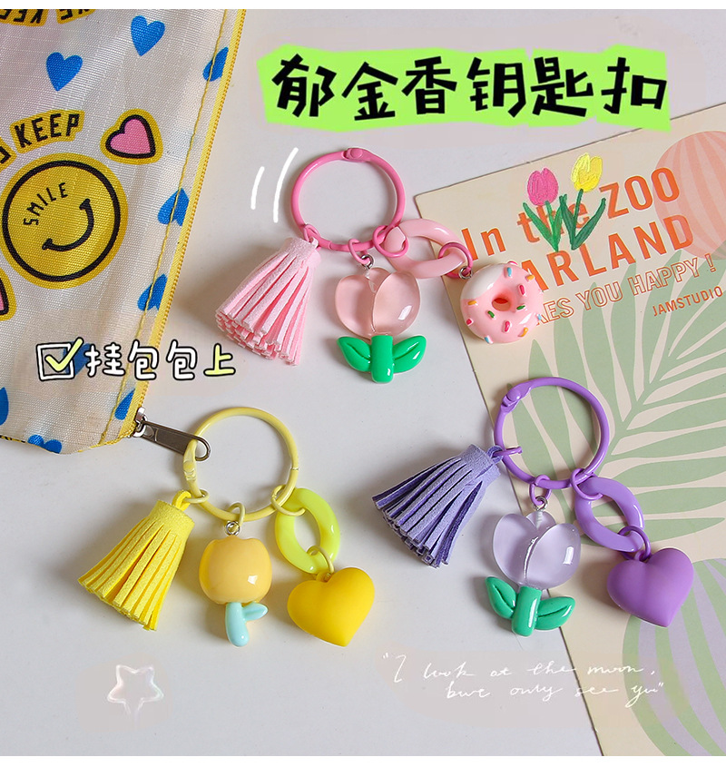 작은 신선한 수지 튤립 열쇠 고리 펜던트 창조적 인 DIY 꽃 가방 매달려 보석 소녀의 심장 열쇠 고리