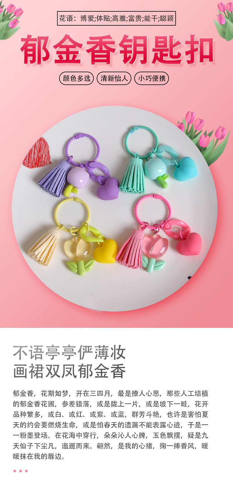 작은 신선한 수지 튤립 열쇠 고리 펜던트 창조적 인 DIY 꽃 가방 매달려 보석 소녀의 심장 열쇠 고리스토어 가기
