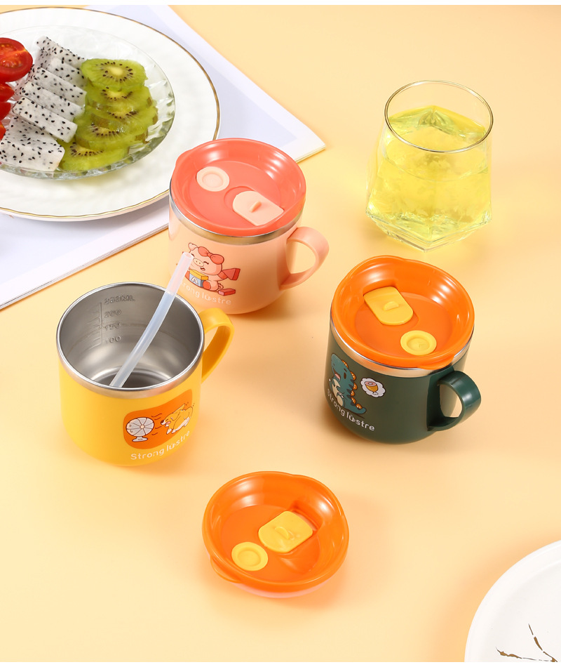 어린이 물컵 304 스테인레스 물컵 아기 우유 컵 가정 수프 컵 만화 귀여운 작은 물 컵 선물스토어 가기
