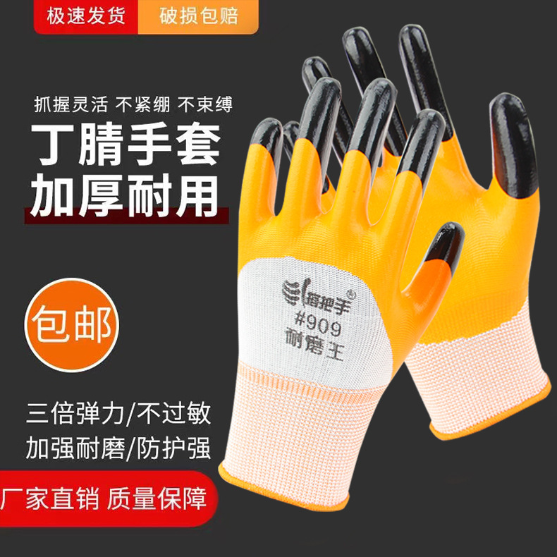 핸들 #909 다섯 손가락 강화 니트릴 담근 내마모성 미끄럼 방지 건설 현장 작업 노동 보호 장갑스토어 가기