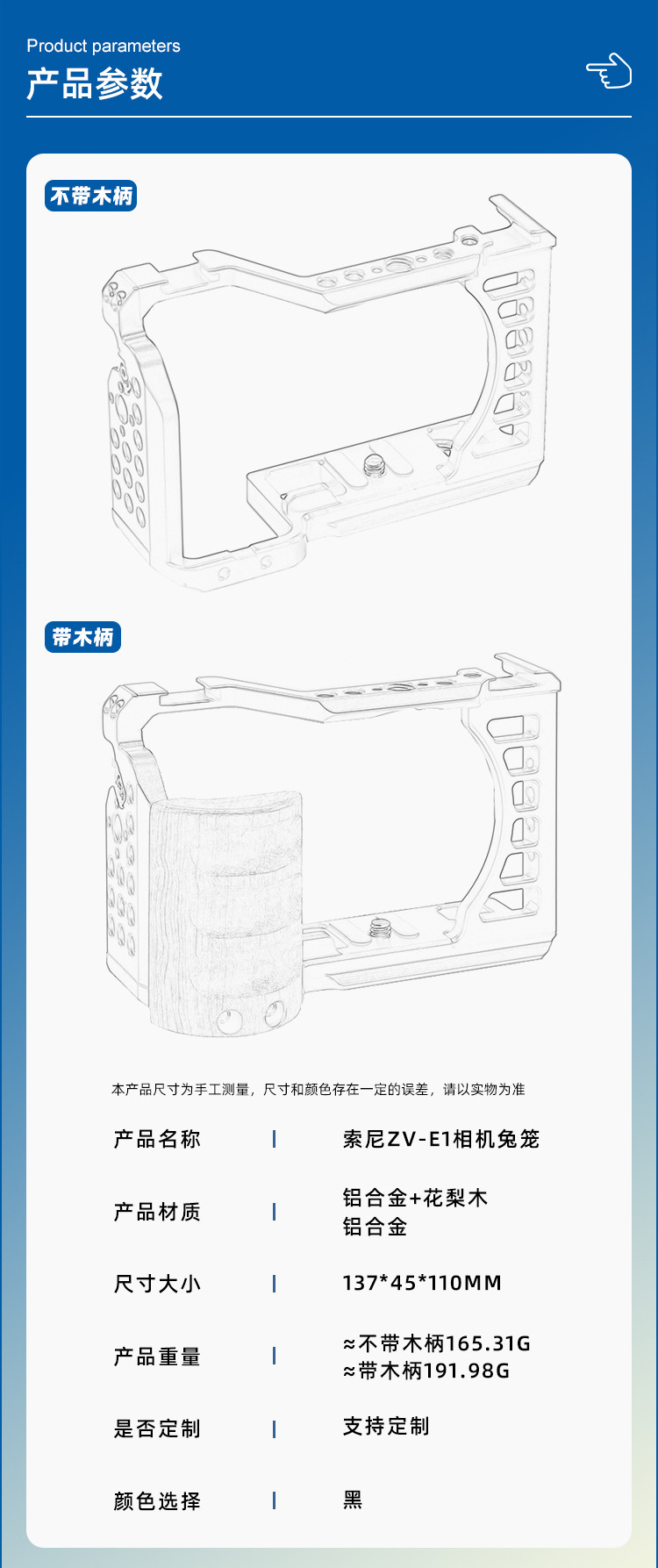 소니 ZVE1 카메라 토끼 케이지 ZV-E1 카메라 SLR 안정기 수직 촬영 나무 손잡이 확장 보호 프레임스토어 가기