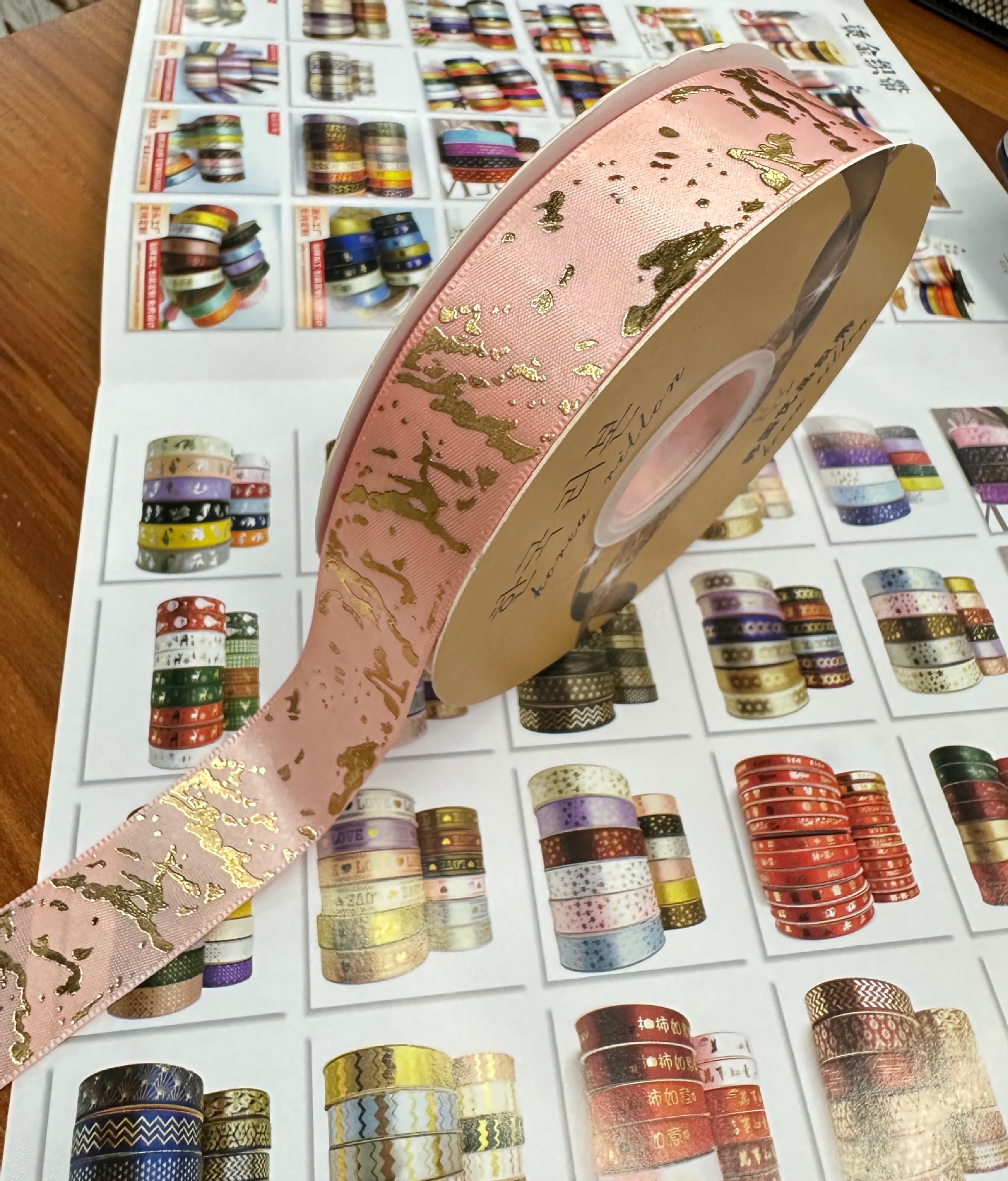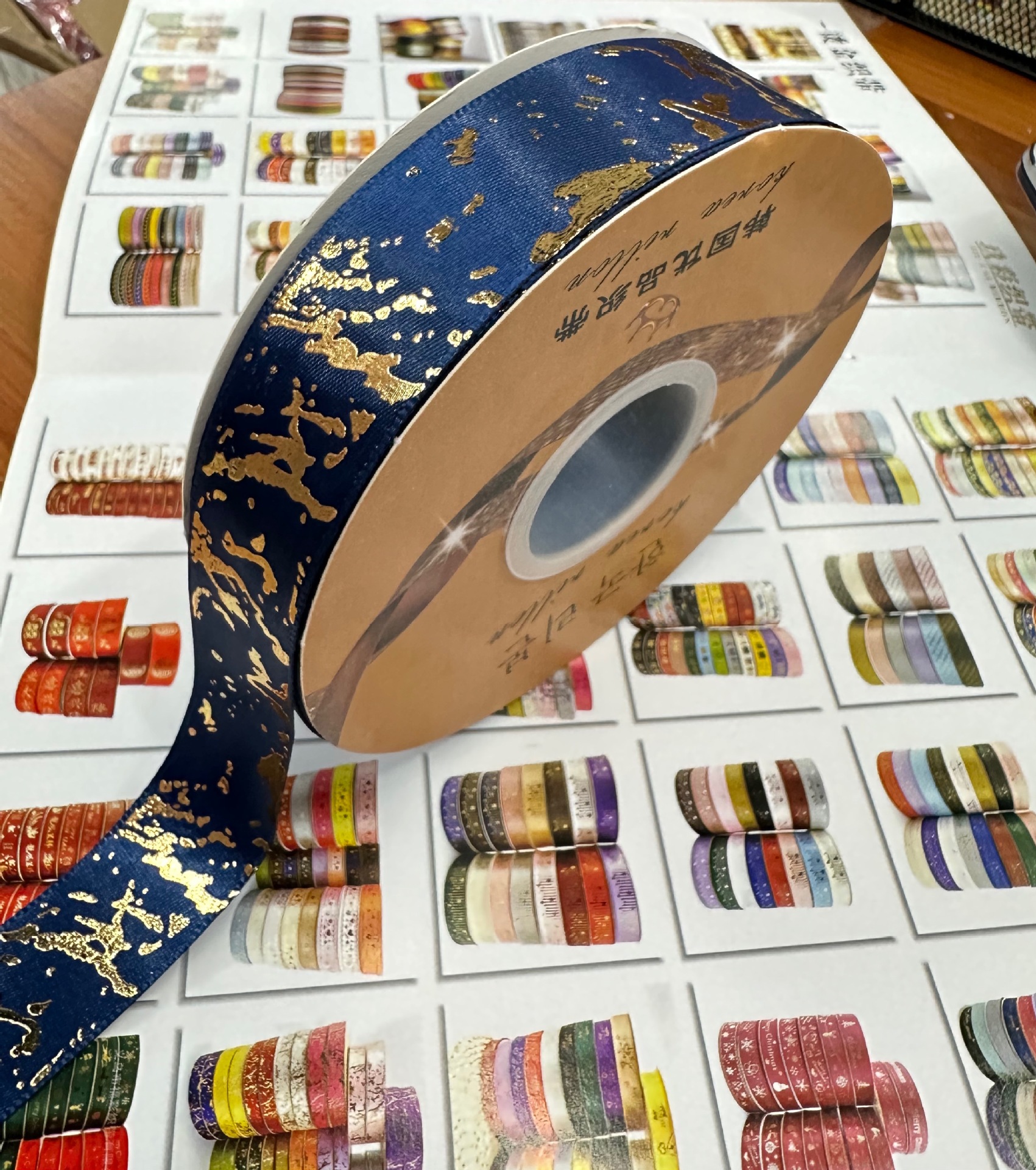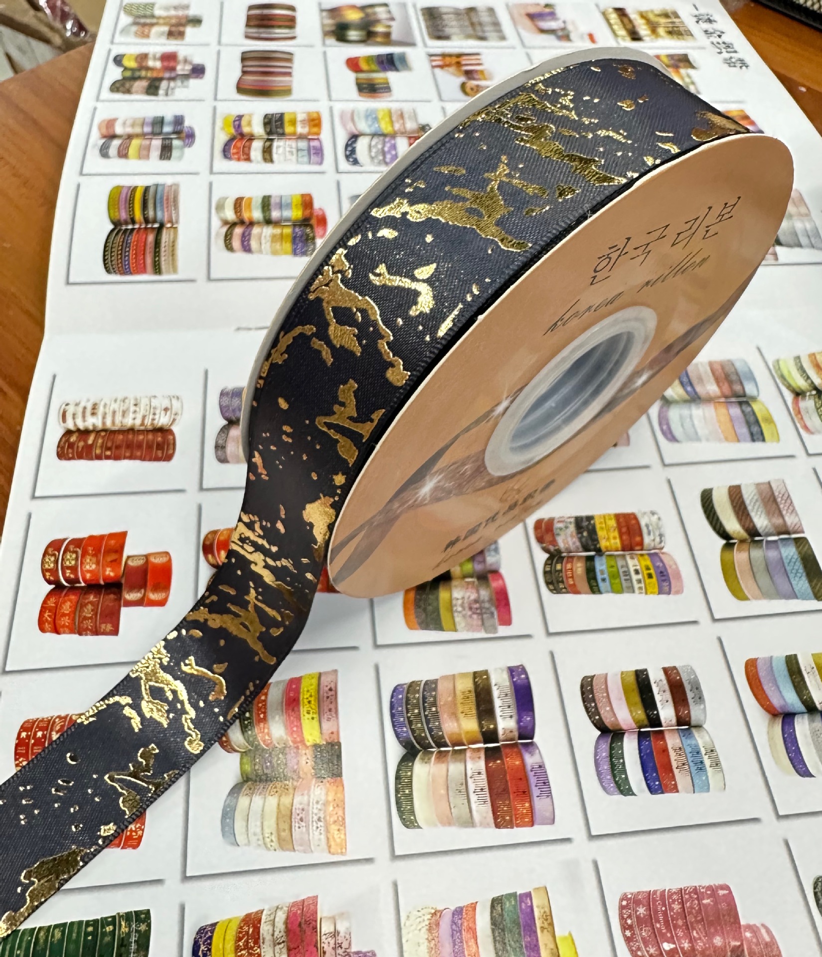 2.5cm 폭의 고품질 열가소성 금박 대리석 무늬 폴리에스터 리본, 리본 장식용 직물 소재스토어 가기