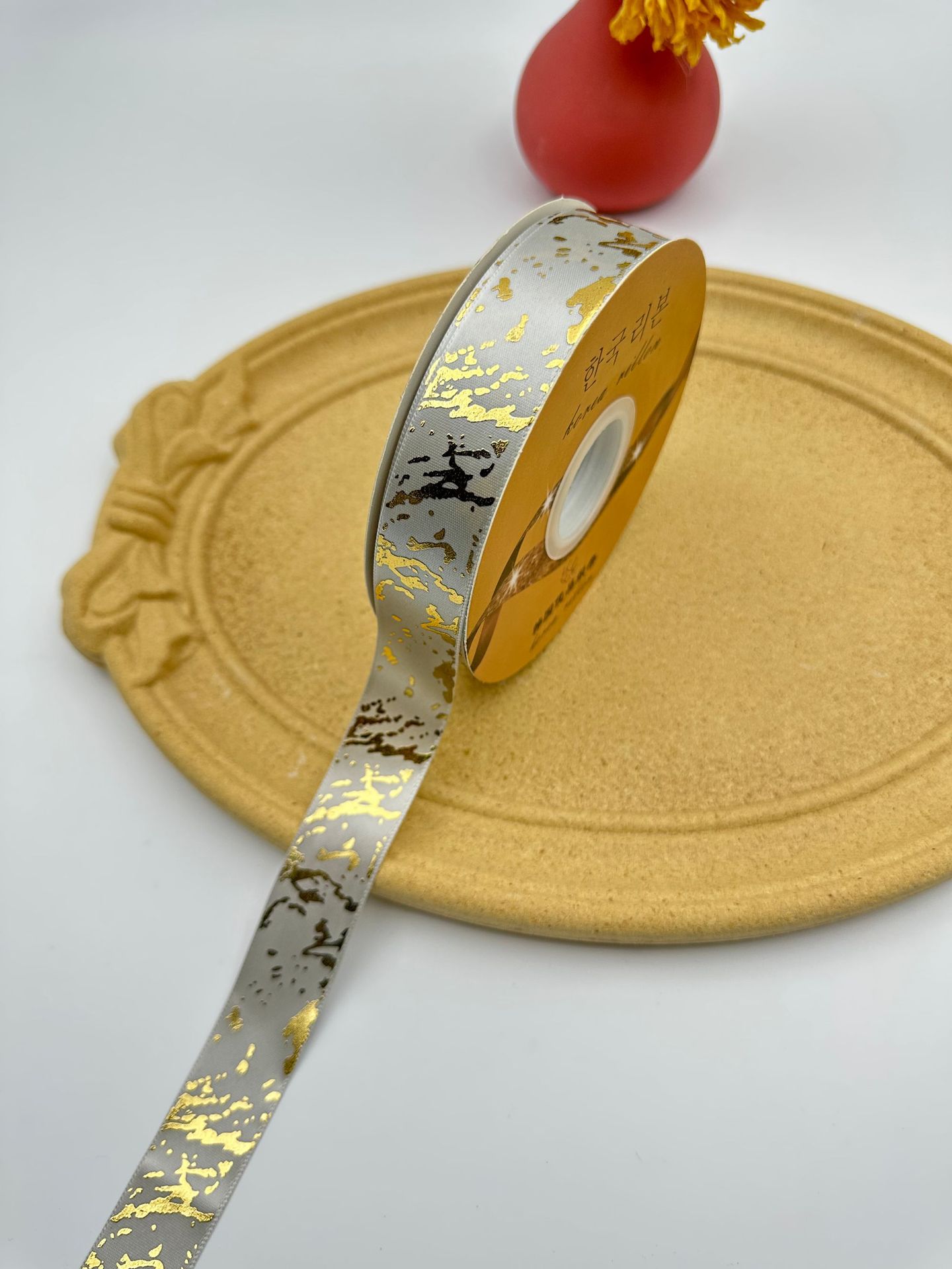 2.5cm 폭의 고품질 열가소성 금박 대리석 무늬 폴리에스터 리본, 리본 장식용 직물 소재