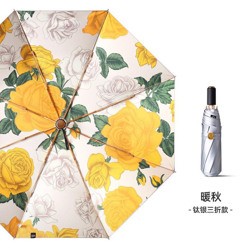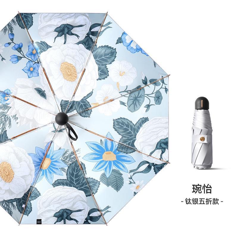 두꺼운 티타늄 실버 차양 접는 우산 UV 보호 태양 우산 남성과 여성을위한 슈퍼 자외선 차단제와 비 보호 우산 세트스토어 가기