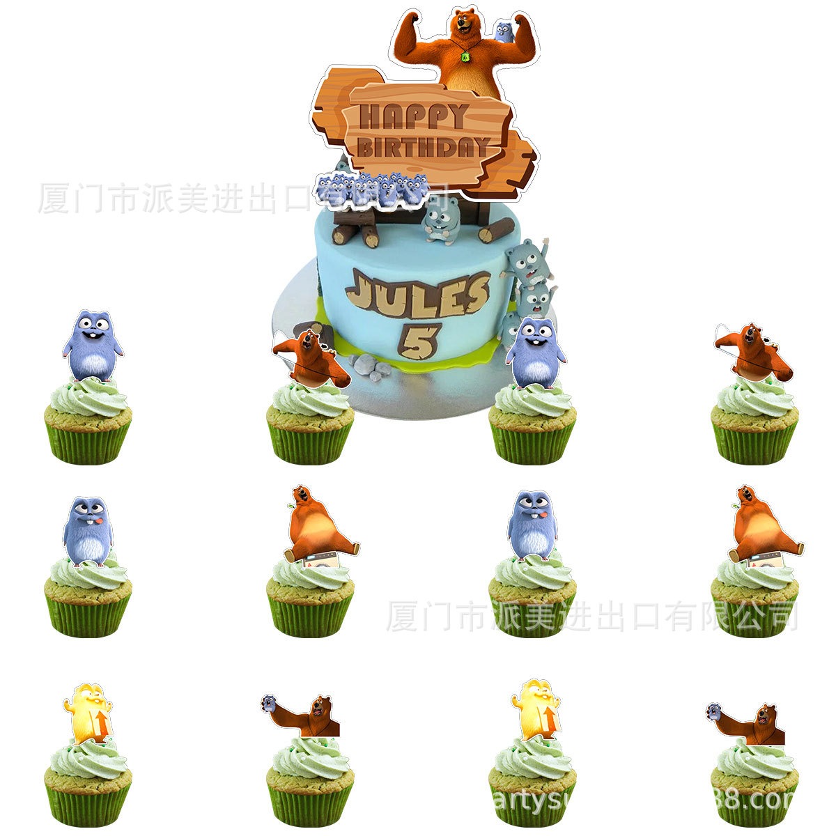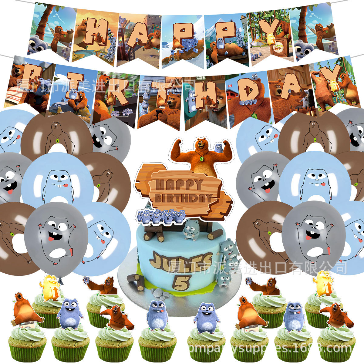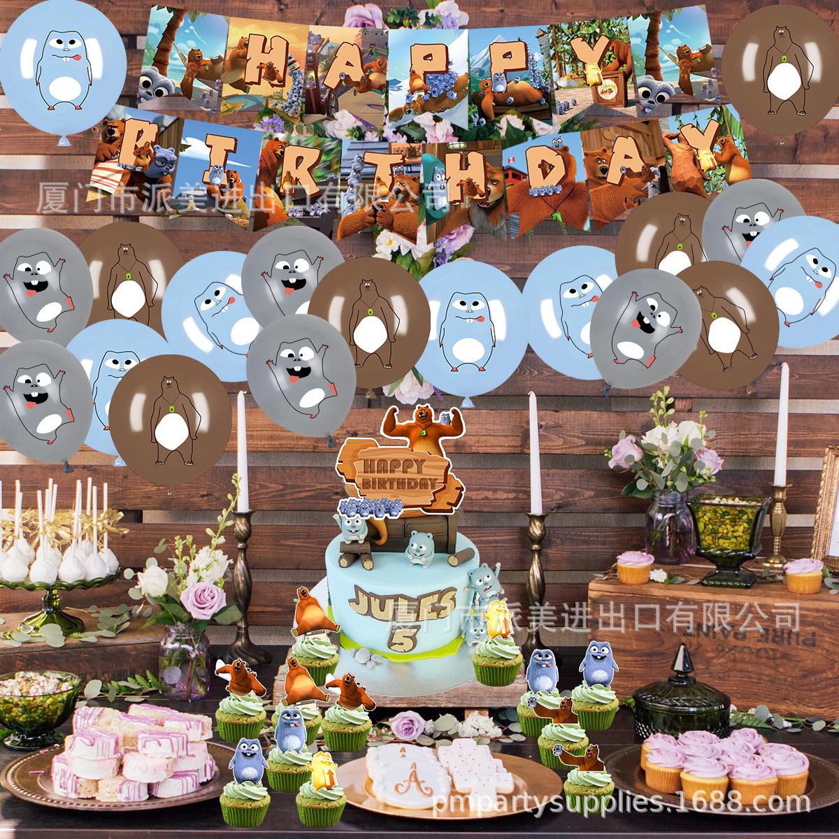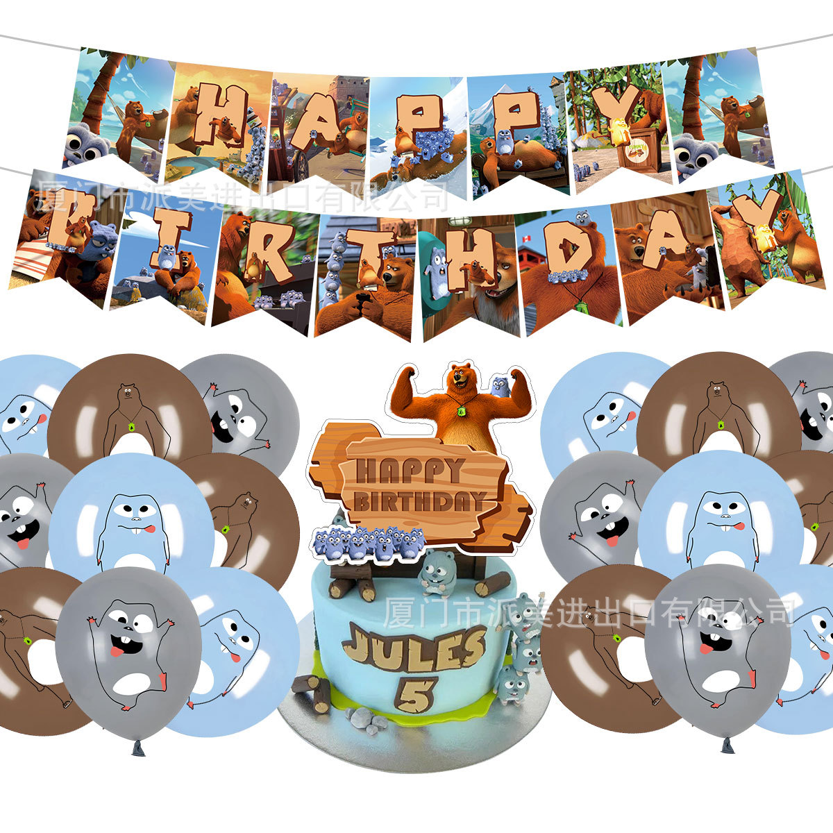 곰 마우스 테마 장식 세트 어린이 파티 장식 용품 배너 케이크 카드 풍선 장식