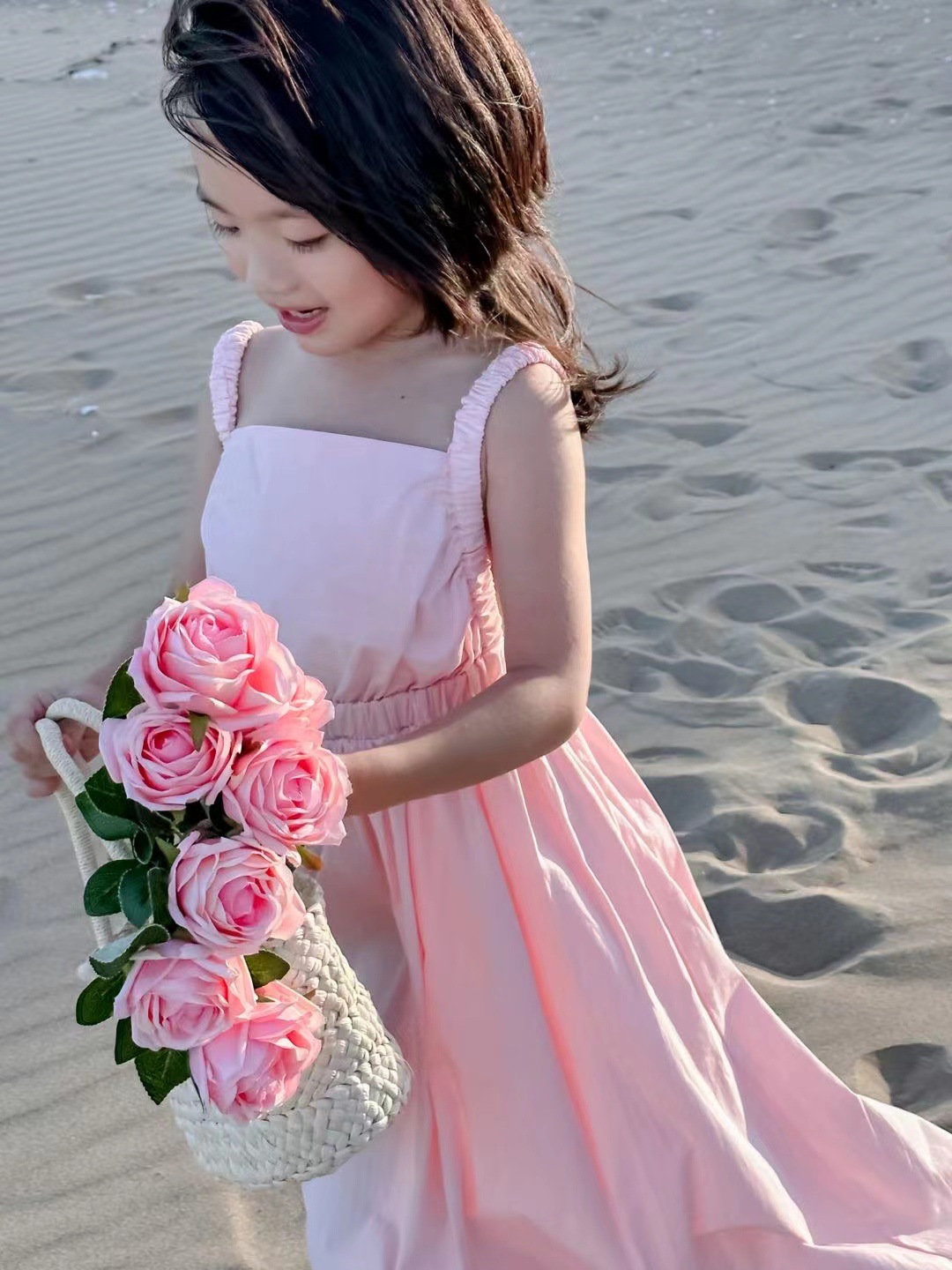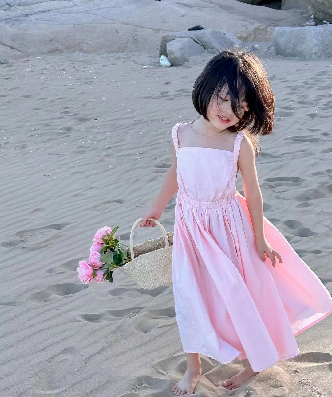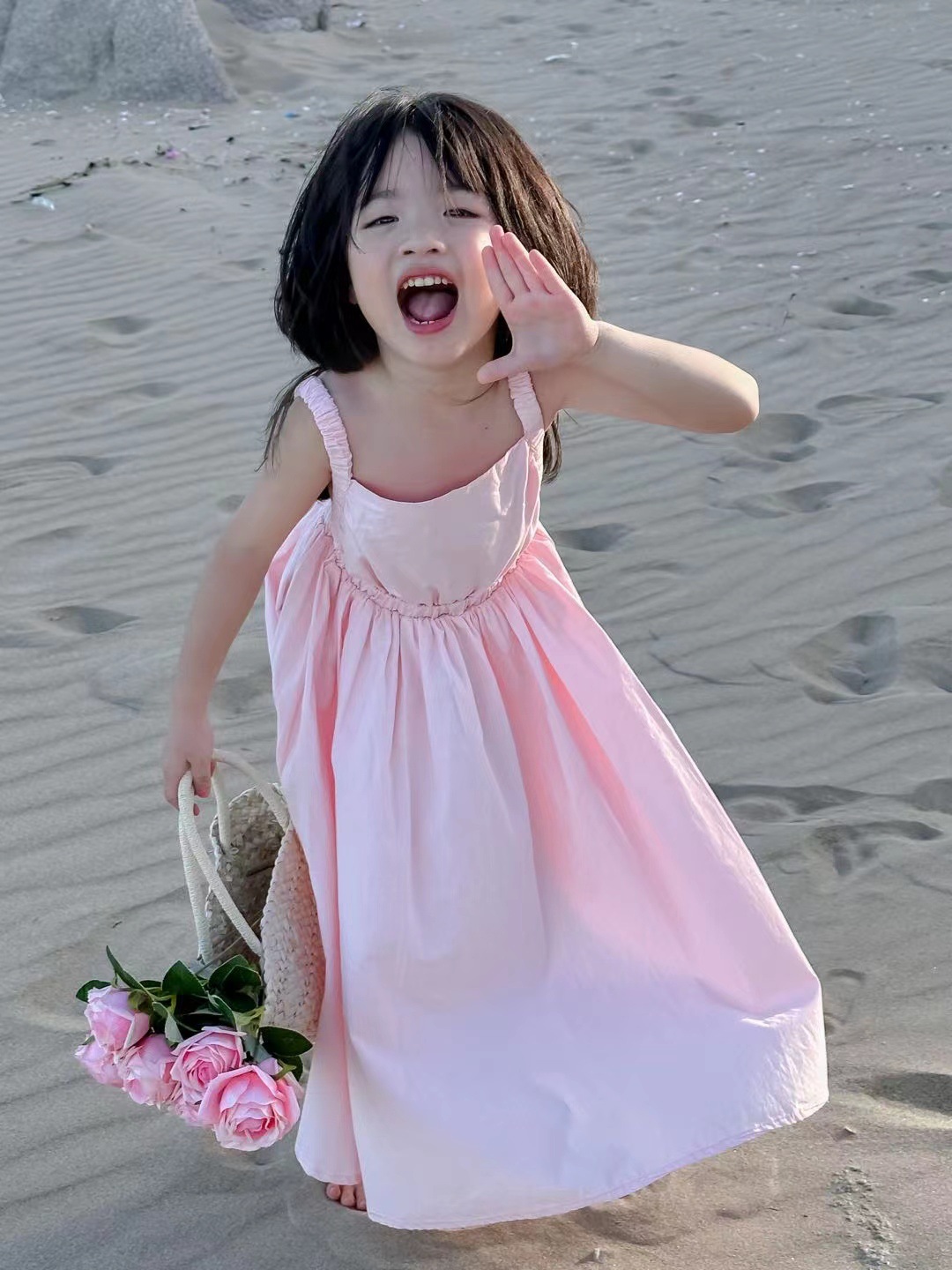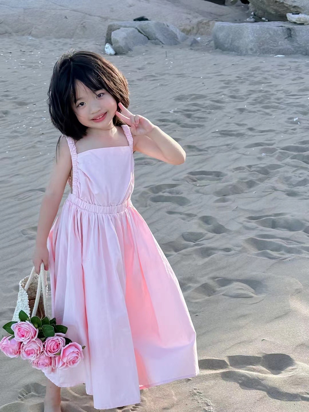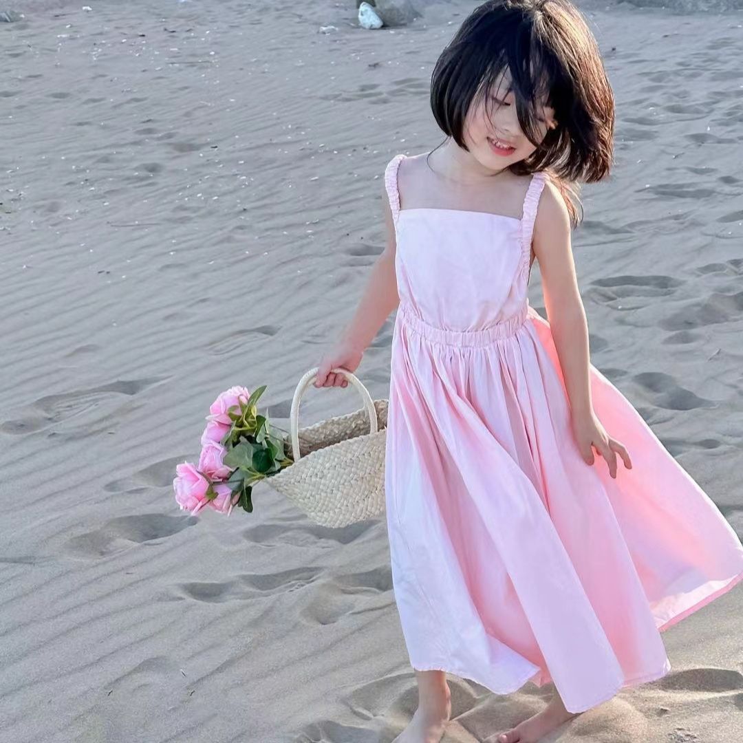 여아 스커트 신선한 분말 등이없는 스트랩 원피스 공주 스커트 23 여름 새로운 대외 무역 아동 의류 3-8 세스토어 가기