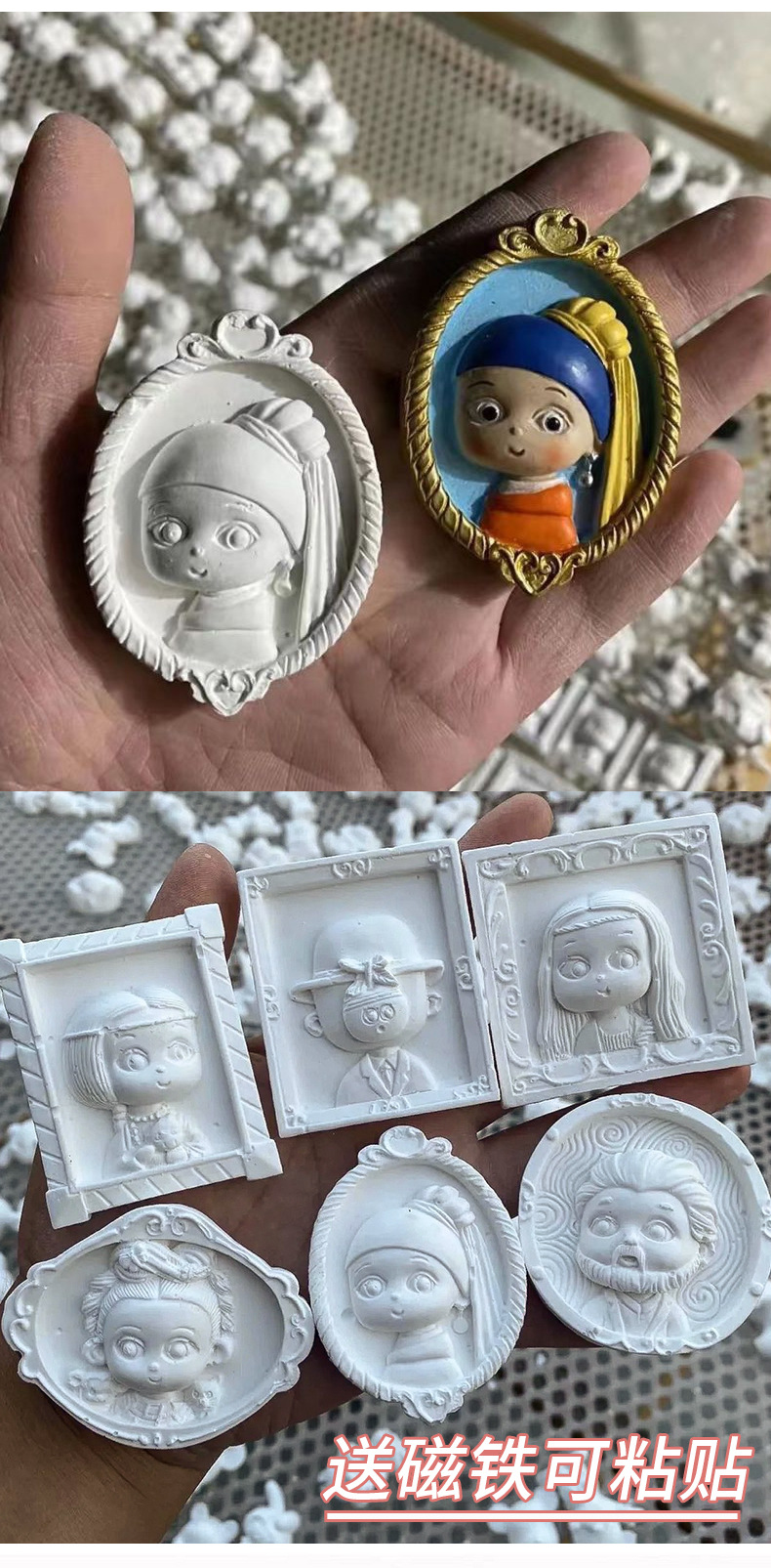 석고 인형 세계적으로 유명한 그림 색칠 크리 에이 티브 DIY 자석 냉장고 스티커 페인트 안료 감압 장난감