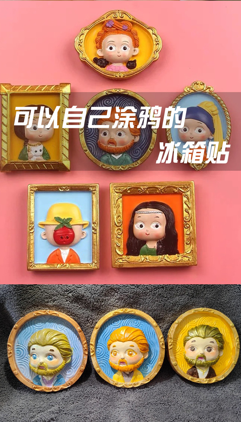 석고 인형 세계적으로 유명한 그림 색칠 크리 에이 티브 DIY 자석 냉장고 스티커 페인트 안료 감압 장난감스토어 가기