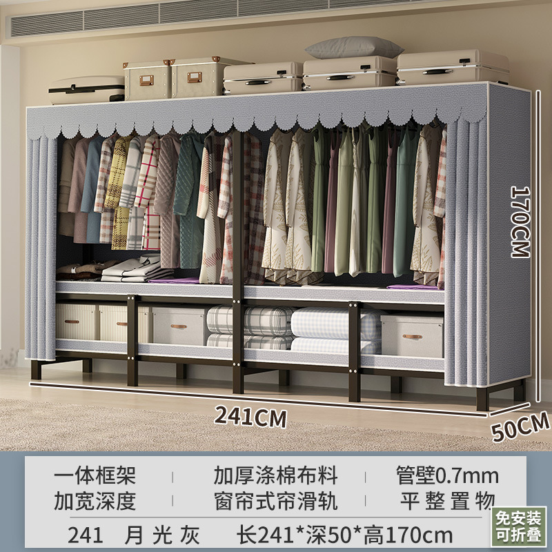설치 무료 간단한 천 옷장 침실 접이식 가정용 수납 캐비닛 렌탈룸 기숙사 경제적 인 철골 걸이 옷장