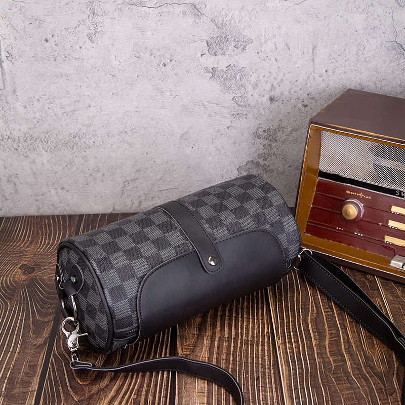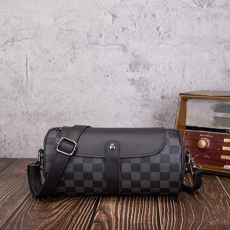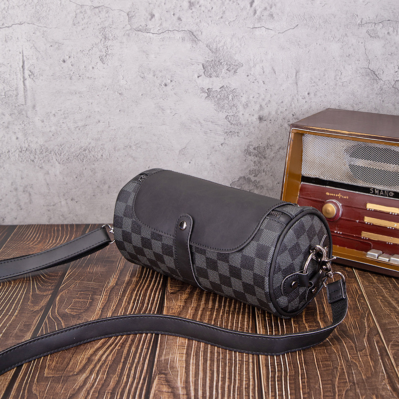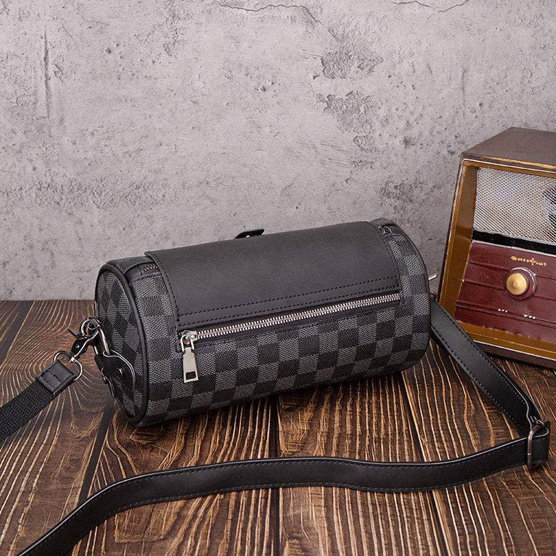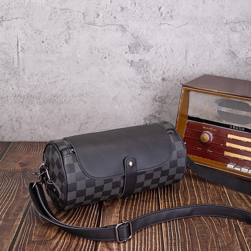 2023 신상품 라운드 버킷 남성 숄더백 일본과 한국 패션 크로스바디 백 트렌디 한 격자 무늬 크로스바디 백 통근 작은 배낭