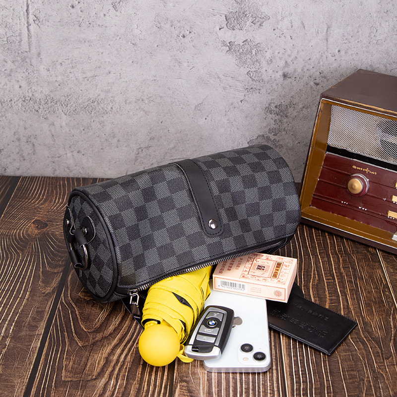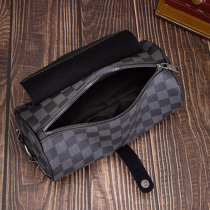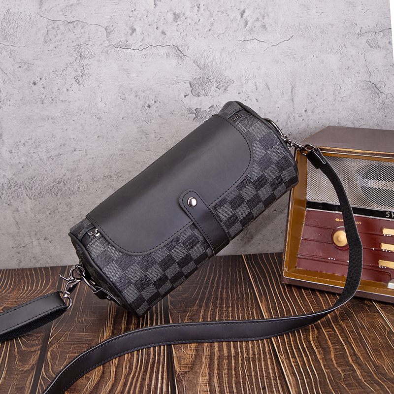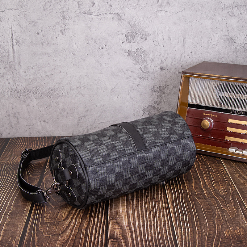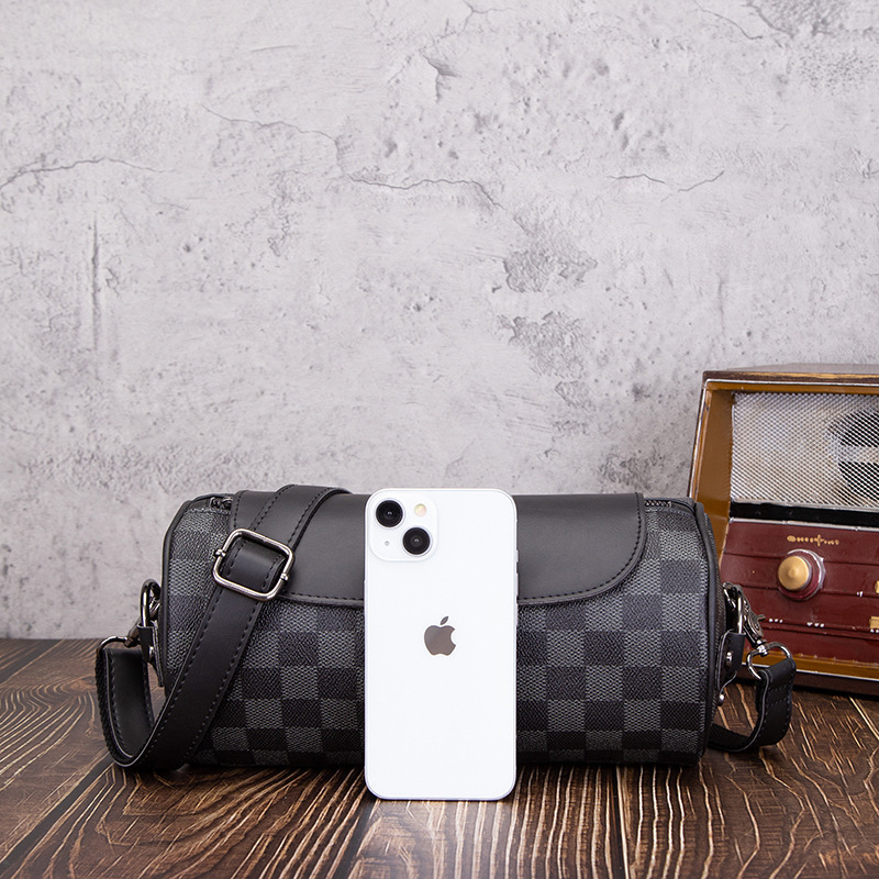 2023 신상품 라운드 버킷 남성 숄더백 일본과 한국 패션 크로스바디 백 트렌디 한 격자 무늬 크로스바디 백 통근 작은 배낭