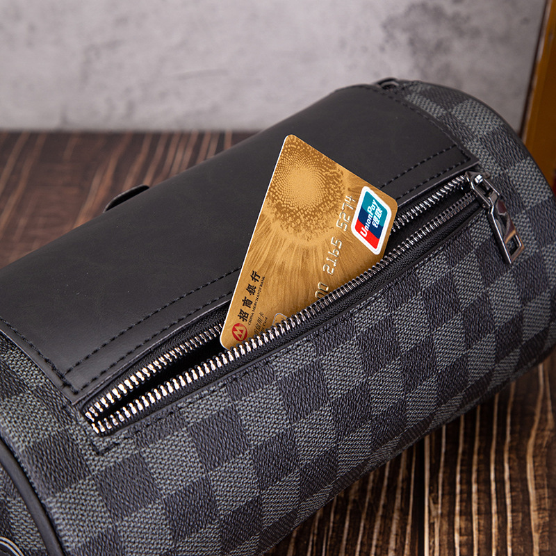 2023 신상품 라운드 버킷 남성 숄더백 일본과 한국 패션 크로스바디 백 트렌디 한 격자 무늬 크로스바디 백 통근 작은 배낭스토어 가기