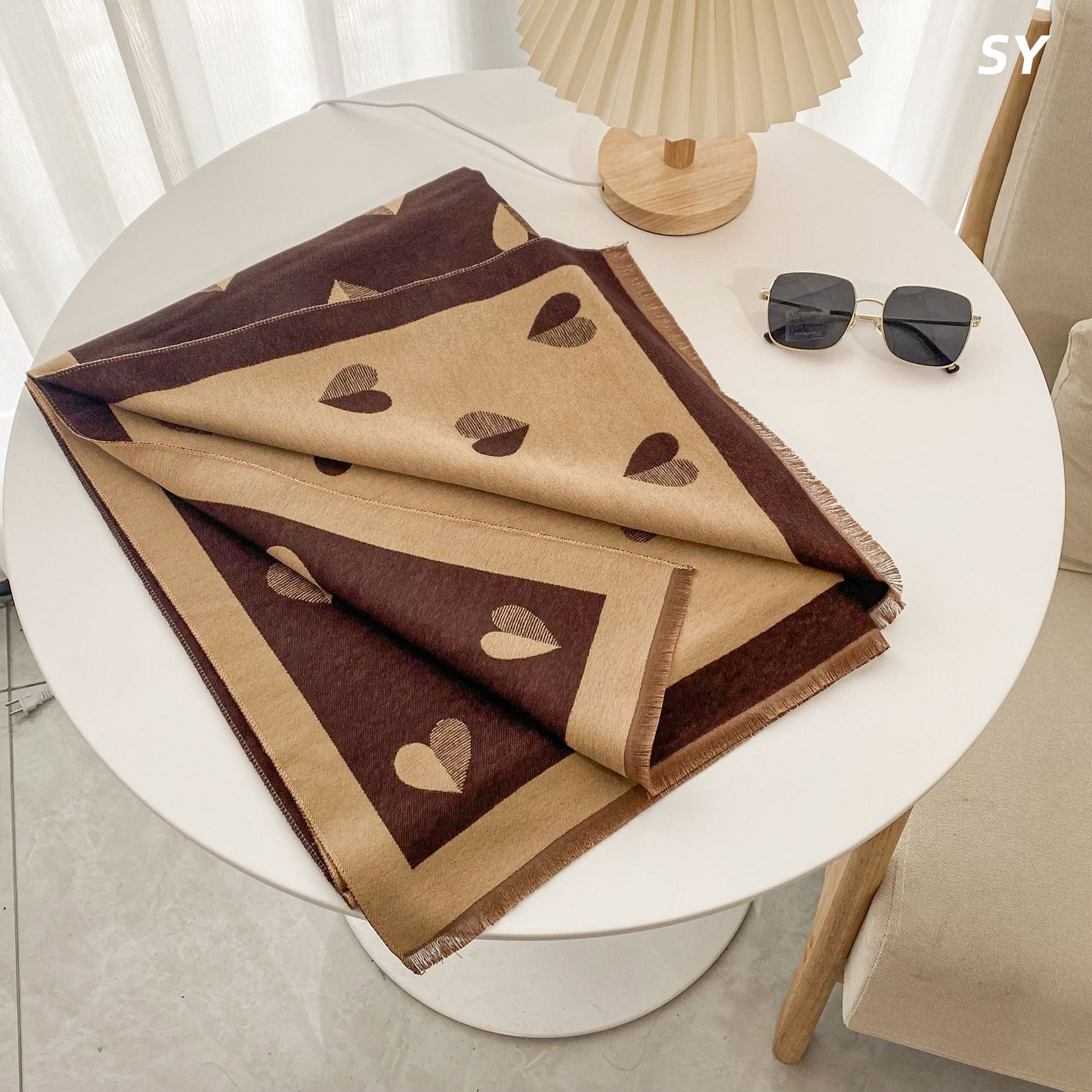귀여운 하트 스카프 여성의 가을과 겨울 한국 스타일 모든 매치 야외 캐시미어 따뜻한 숄 양면 대형 숄 이중 목적스토어 가기