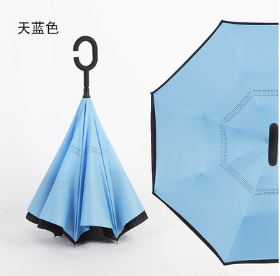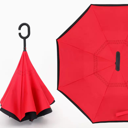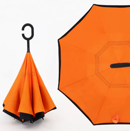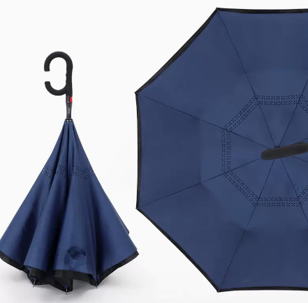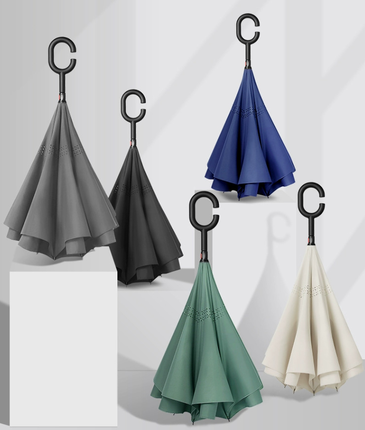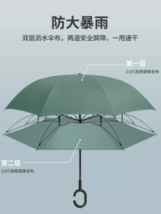 자동차 역 우산 C 형 직선형 막대 2 층 우산 핸즈프리 차양 자외선 차단제 및 비 보호 이중 사용 인쇄 가능 광고 로고
