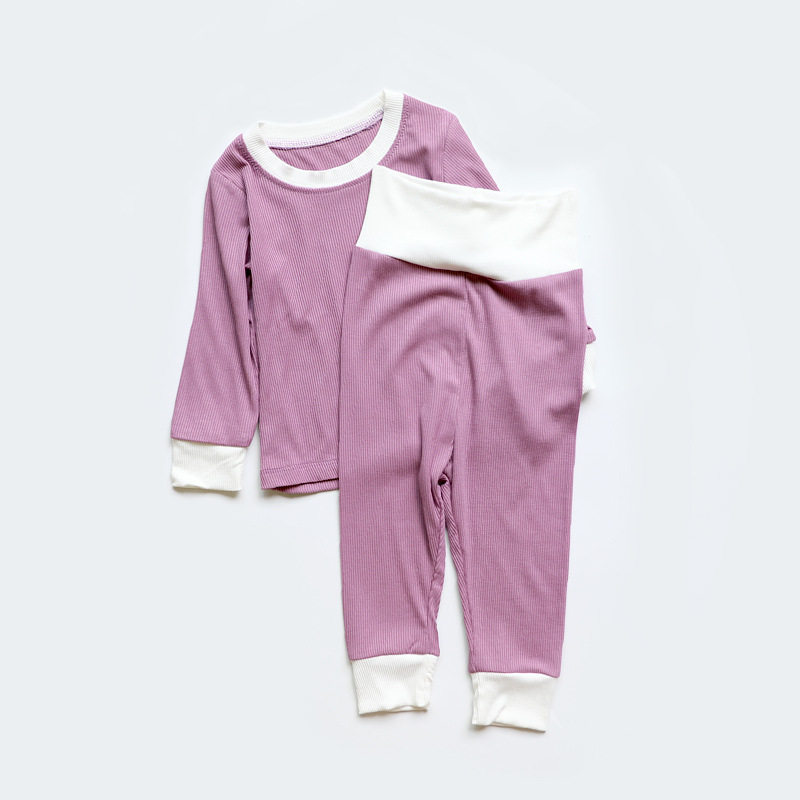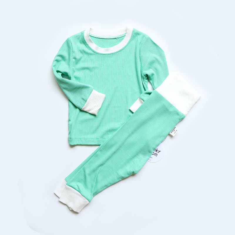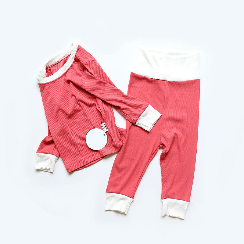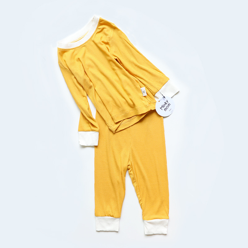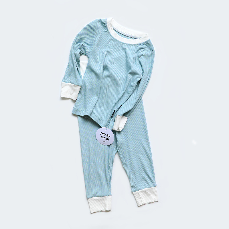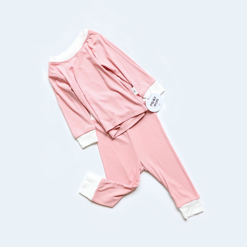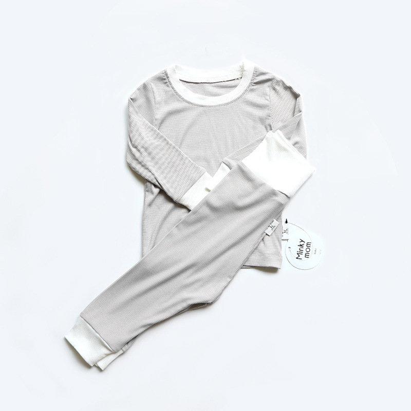2023 가을 minkhymom 긴 소매 바지 배꼽 높은 허리 아기 소년과 소녀 홈 옷 2 세트