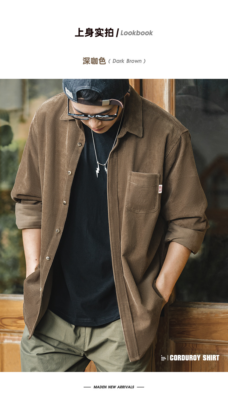 Madden Workwear 아메리칸 캐주얼 긴팔 셔츠 코듀로이 레이어드 아우터 재킷 코듀로이 셔츠 싱글 브레스트 남성 가을스토어 가기