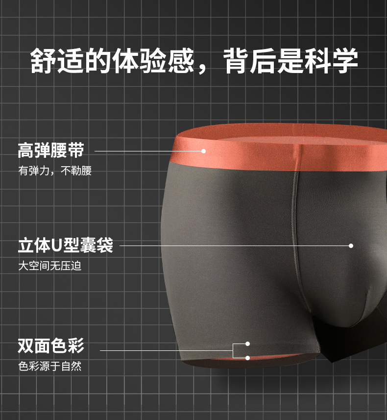 남성용 속옷, 럭셔리 스타일, 양면 아이스 실크, 여름용 얇은 무봉제 배색 실크 항균 속옷스토어 가기