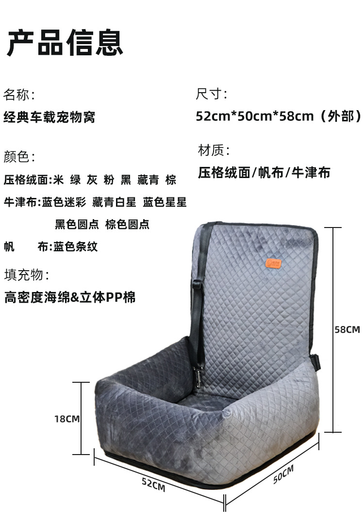 국경을 넘는 차량용 애완동물 침대, 조수석 소형견 및 고양이 침대, 강아지 자동차 고양이 안전 시트, 탈부착 및 세탁 가능