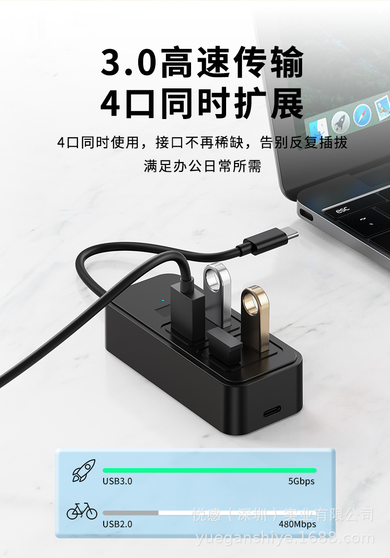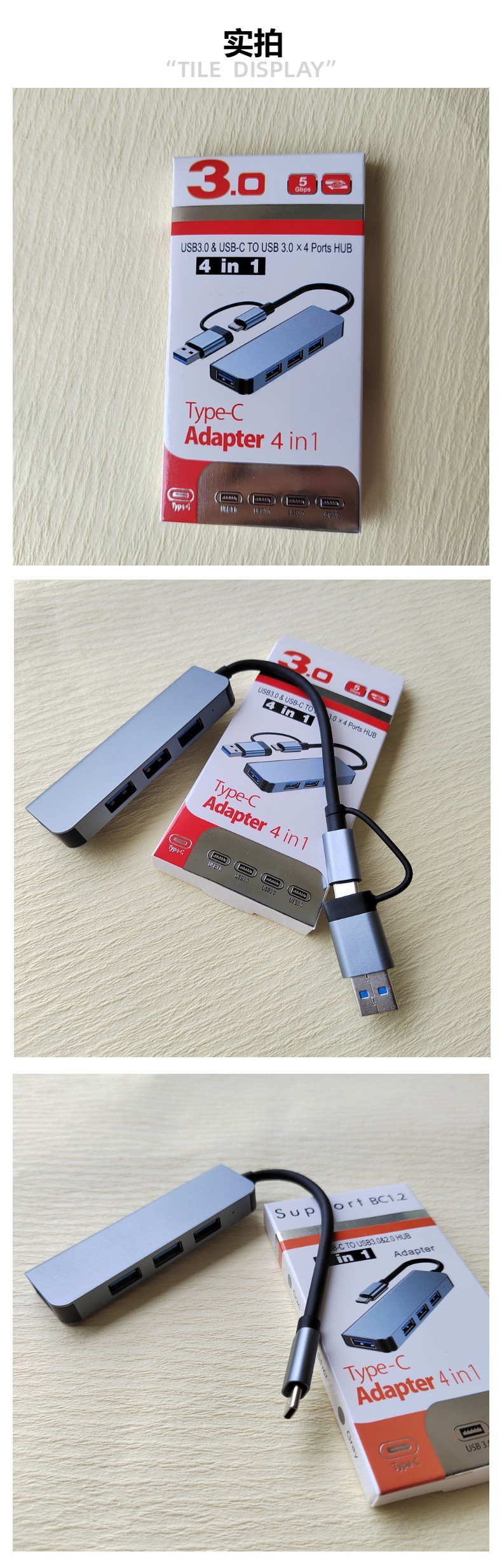 크로스보더 1대4 타입C 분배기 DC 전원 허브3.0 노트북 태블릿 컴퓨터 USB 허브스토어 가기