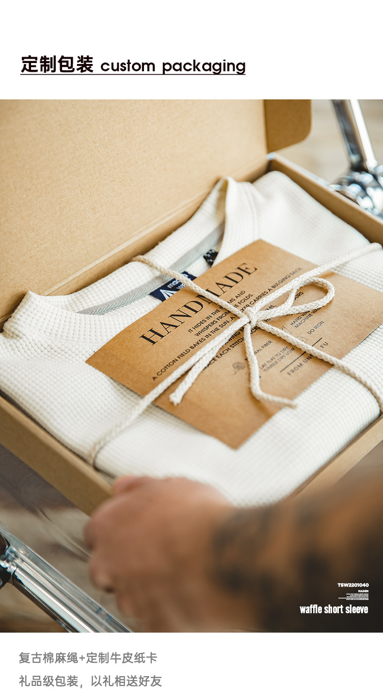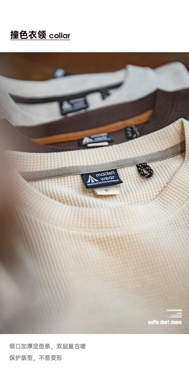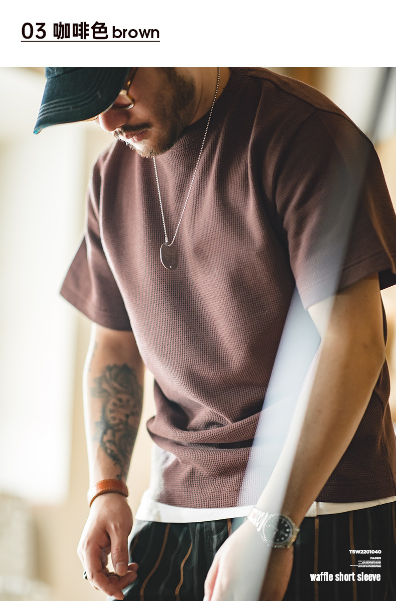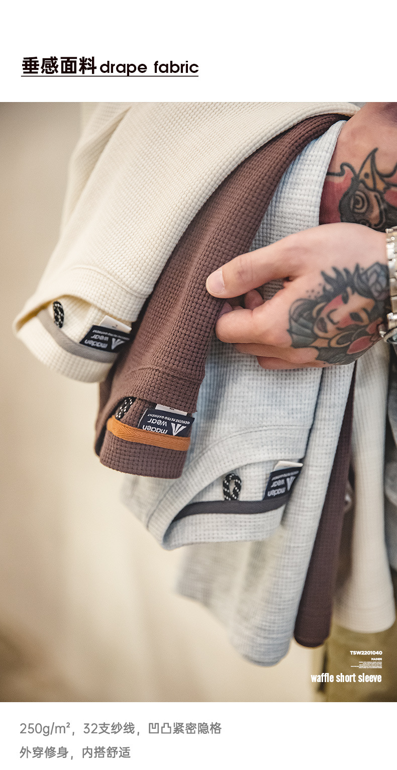 Madden Workwear 아메리칸 오프화이트 와플 티셔츠 니트 오른쪽 어깨 헤비 워시드 머니 스타일 티셔츠 반팔 남성 여름스토어 가기