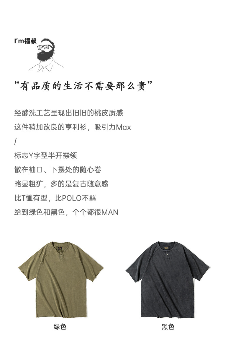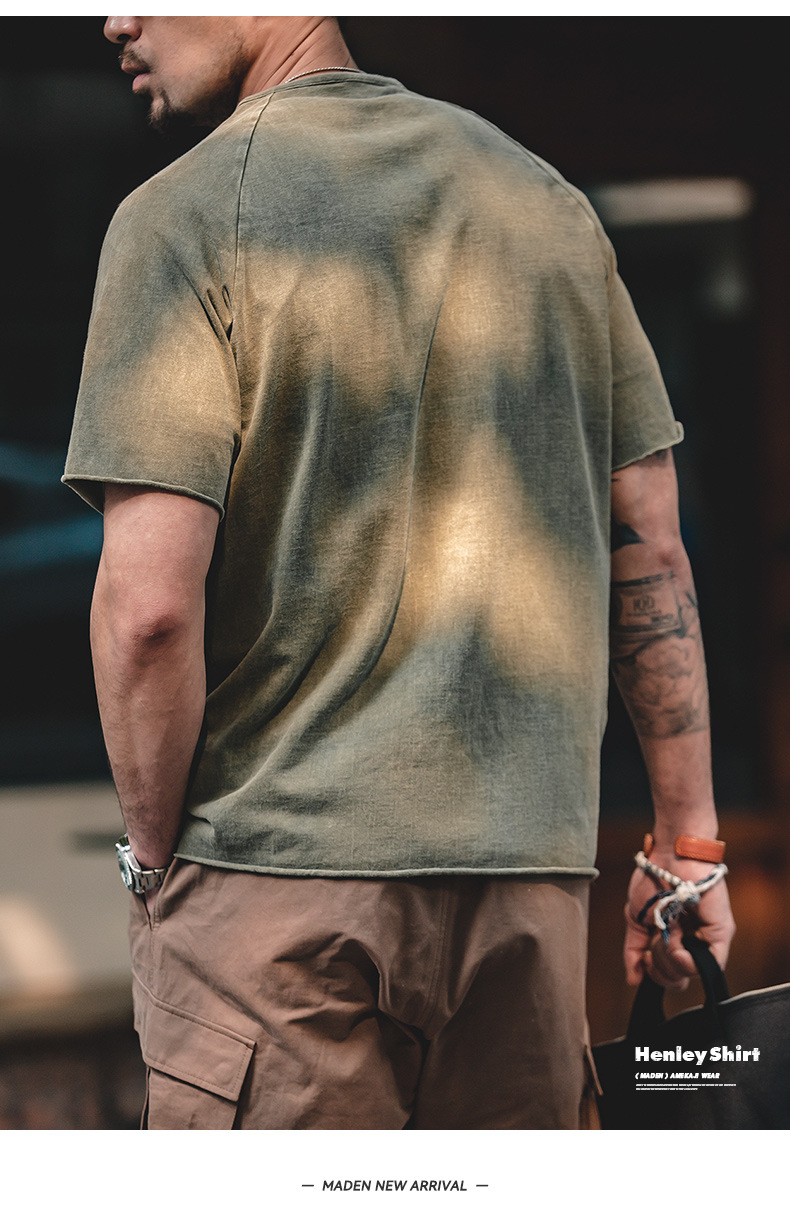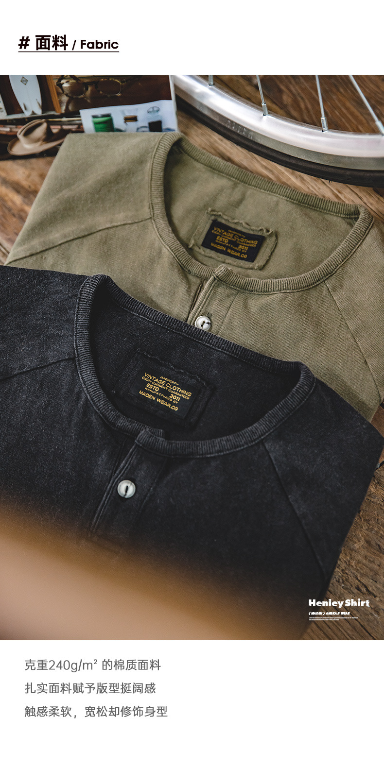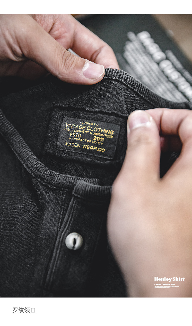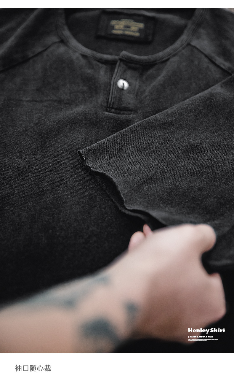 Marden 작업복 복고풍 헨리 칼라 스트레치 슬림 핏 반팔 Kaji 미국 터프가이 티셔츠 남자 여름스토어 가기