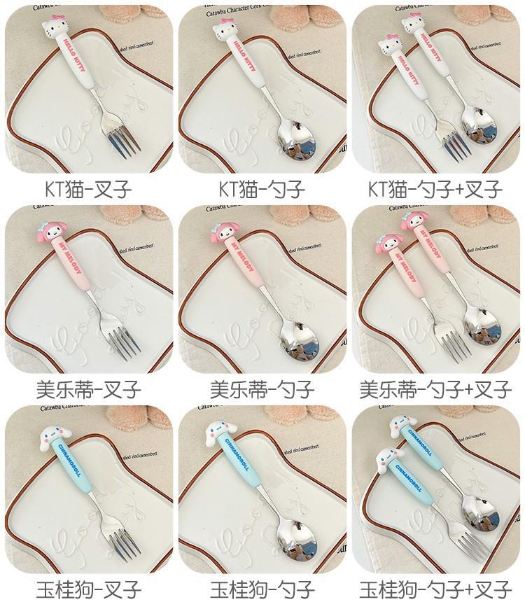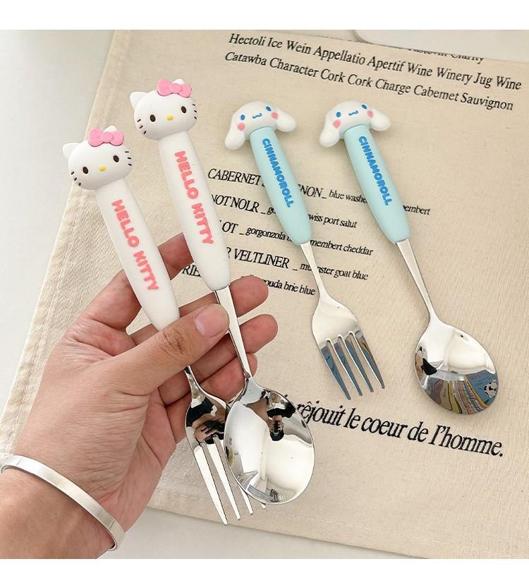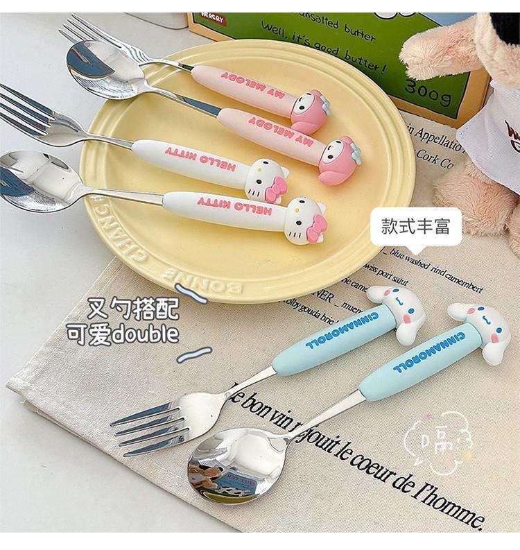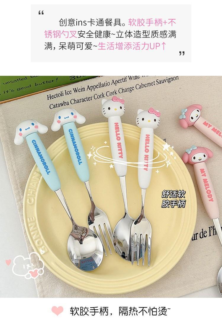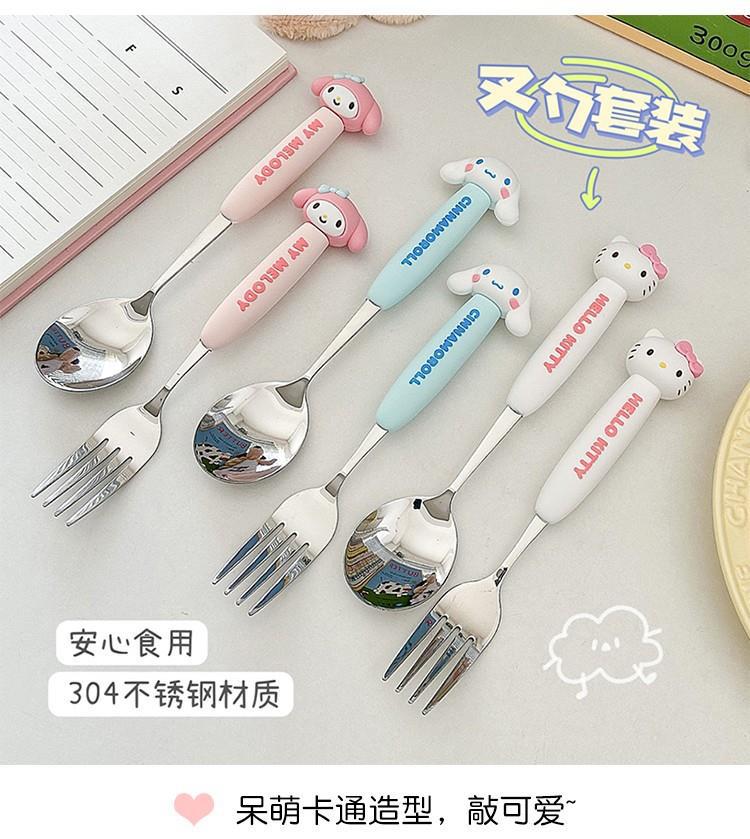 높은 가치의 창조적 인 산리오 스푼 포크 세트 304 스테인레스 스틸 스푼 어린이와 학생 편리한 먹는 숟가락