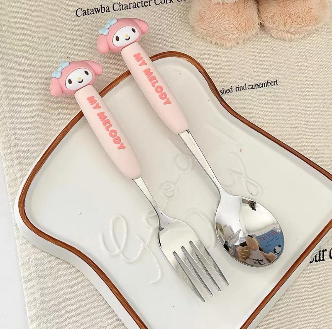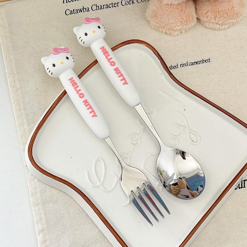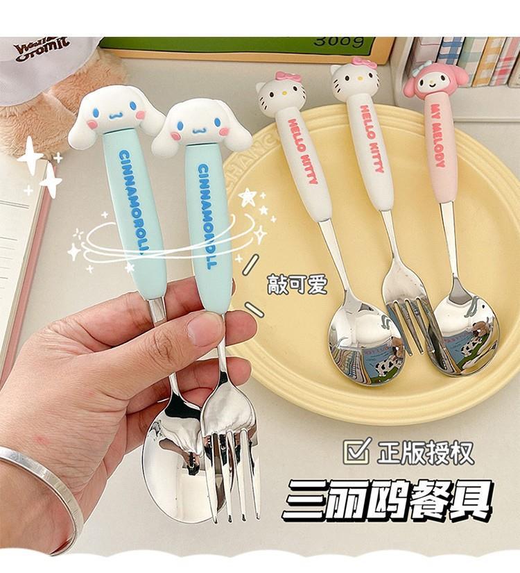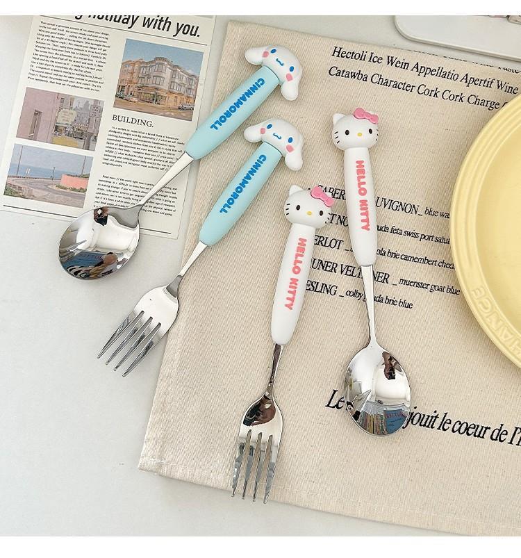 높은 가치의 창조적 인 산리오 스푼 포크 세트 304 스테인레스 스틸 스푼 어린이와 학생 편리한 먹는 숟가락