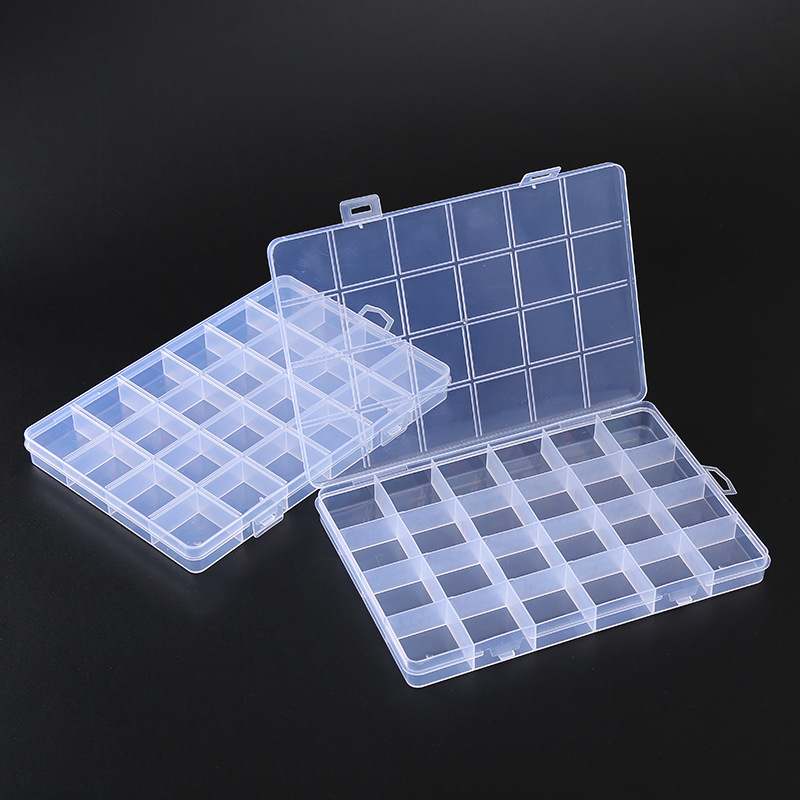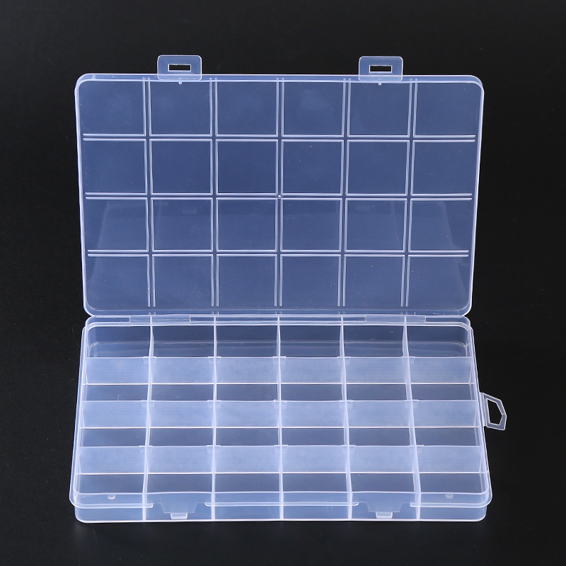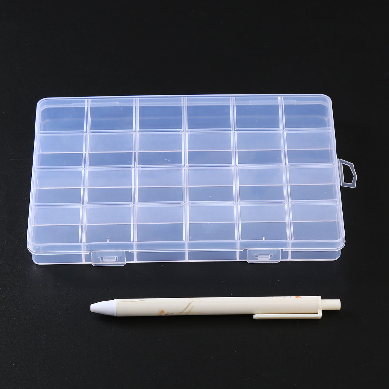 고정 24 그리드 안티 스트링 그리드 투명 플라스틱 상자 쌀 구슬 구슬 다이아몬드 네일 DIY 보석 보관 상자스토어 가기