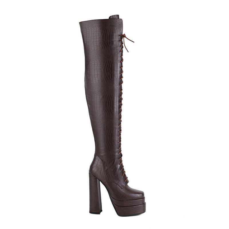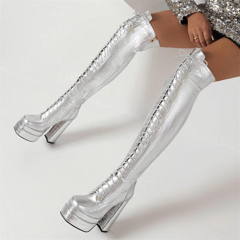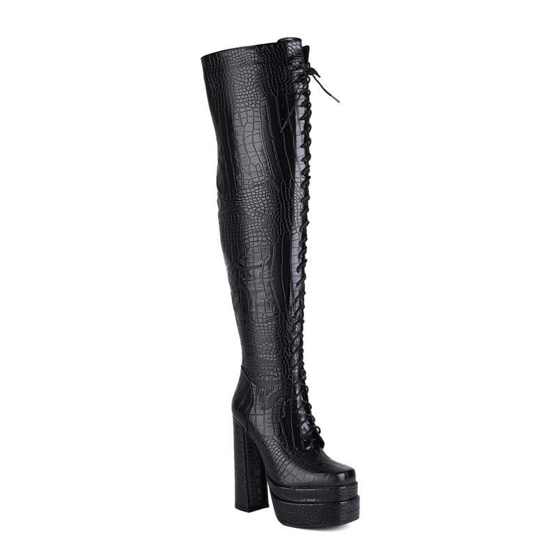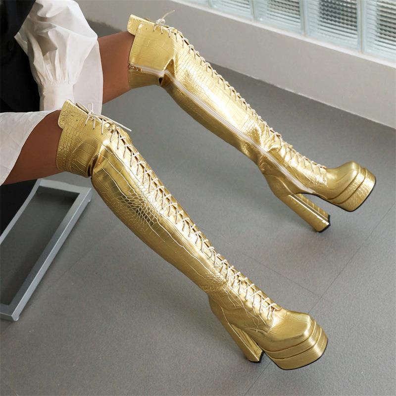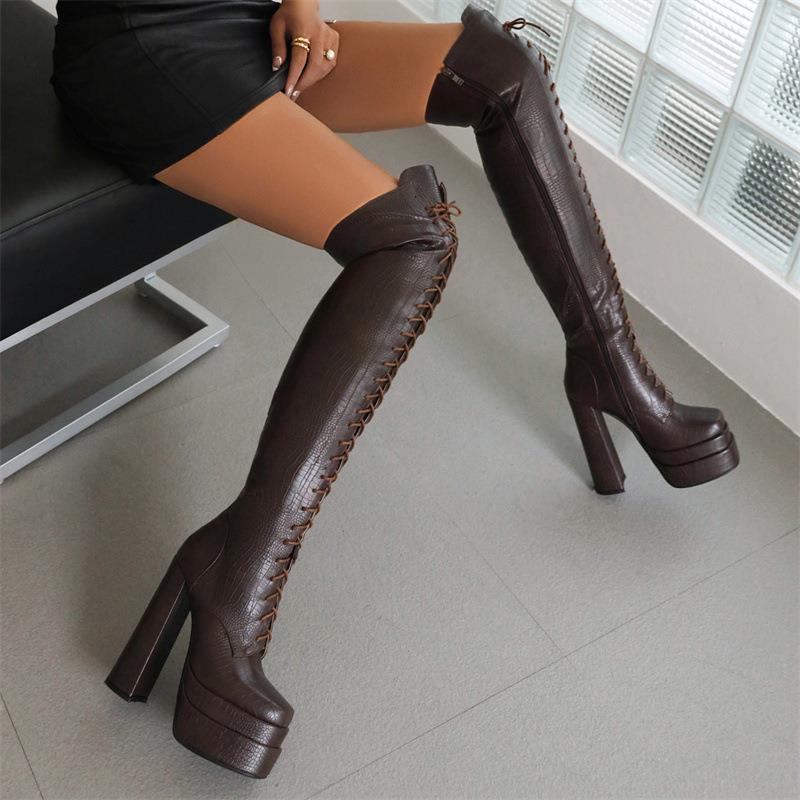 Dropshopping2023 겨울 대외 무역 유럽과 미국 스타일 두꺼운 바닥 플랫폼 40-43 측면 지퍼 무릎 위 여성 부츠스토어 가기