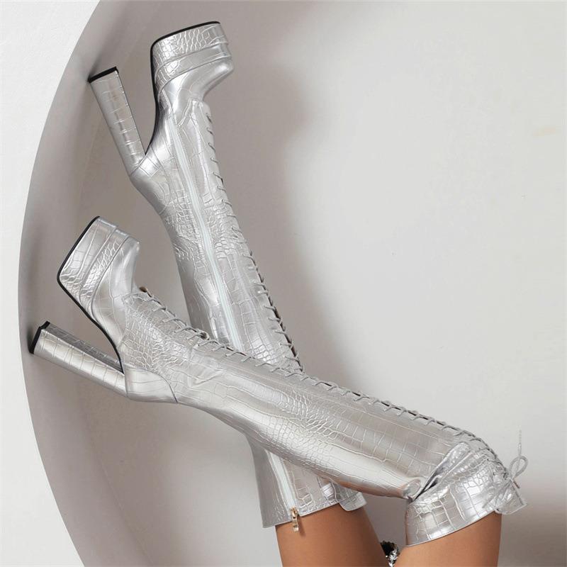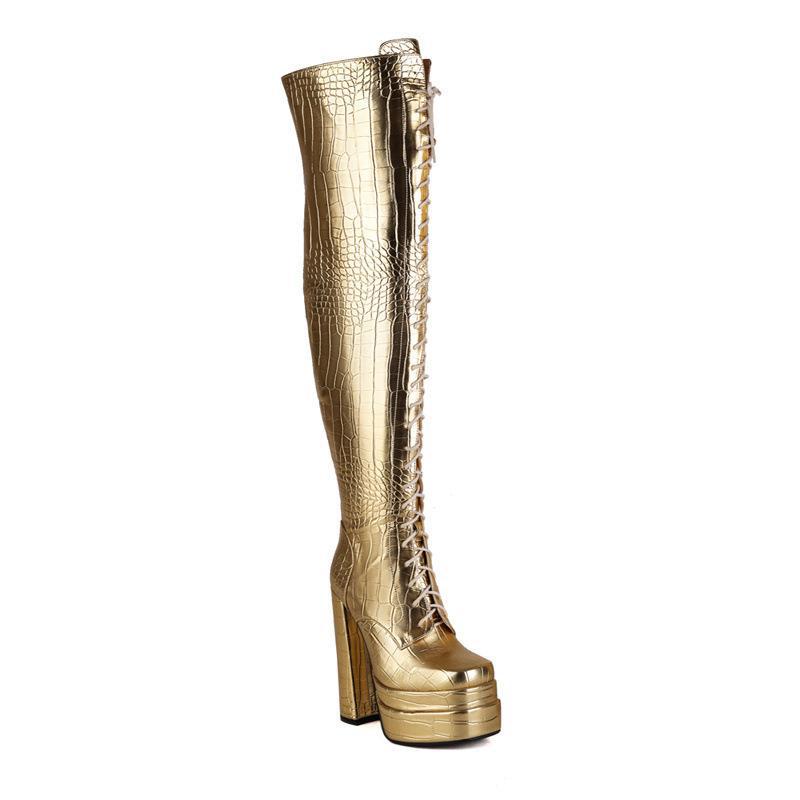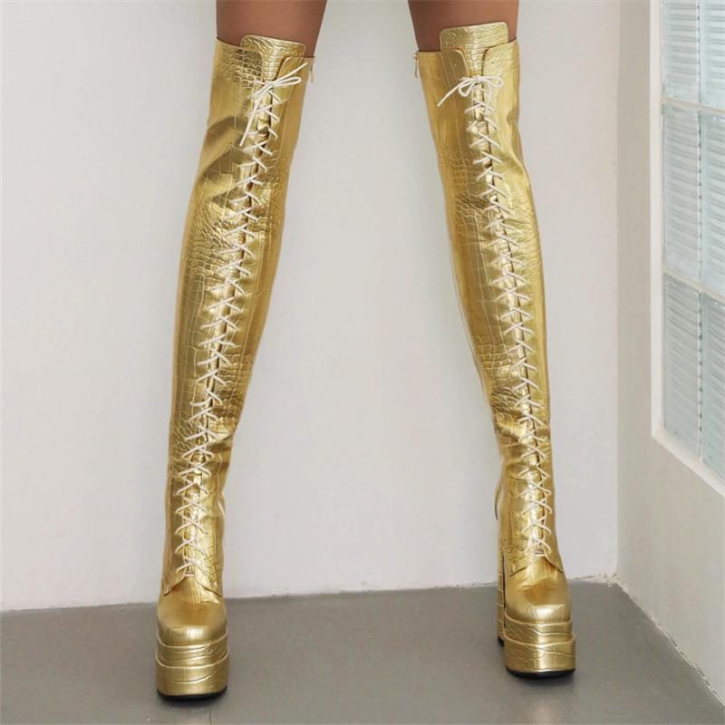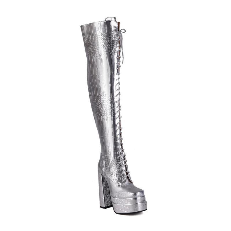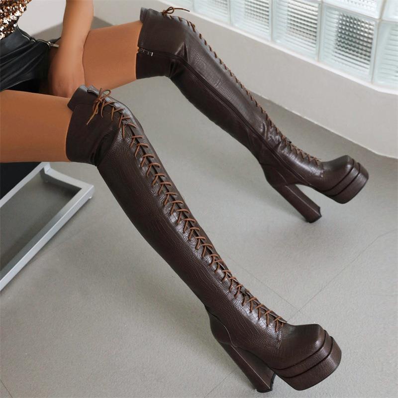 Dropshopping2023 겨울 대외 무역 유럽과 미국 스타일 두꺼운 바닥 플랫폼 40-43 측면 지퍼 무릎 위 여성 부츠스토어 가기