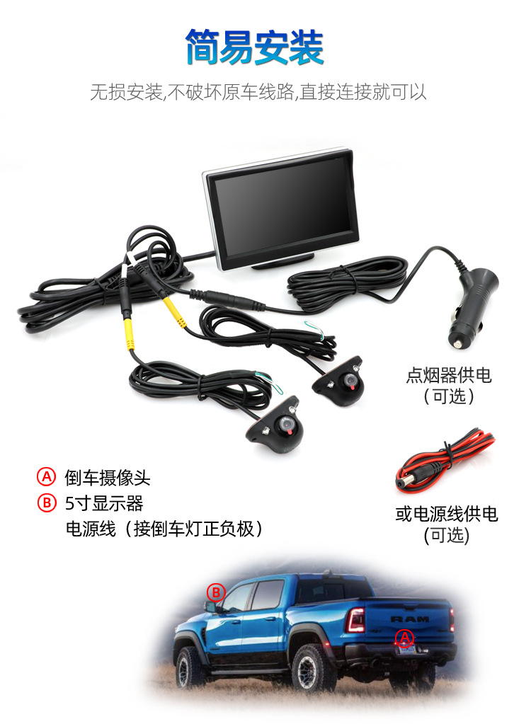 • 5 인치 디스플레이 + CCD 사각지대 카메라