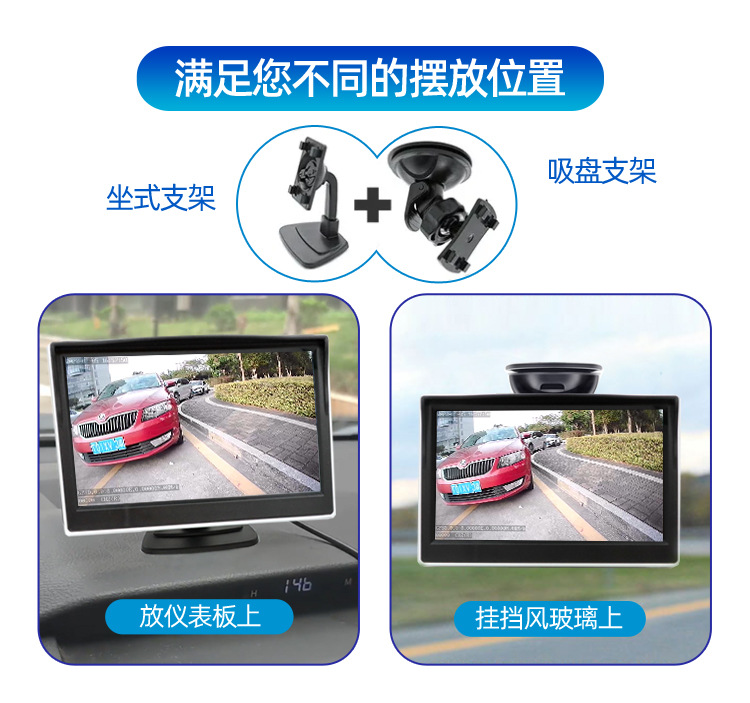 휴대용 감시 베개 스마트 carplay 자동차 상품 반전 이미지 접이식 헤드 스크린 5inch ahd 자동차 모니터스토어 가기