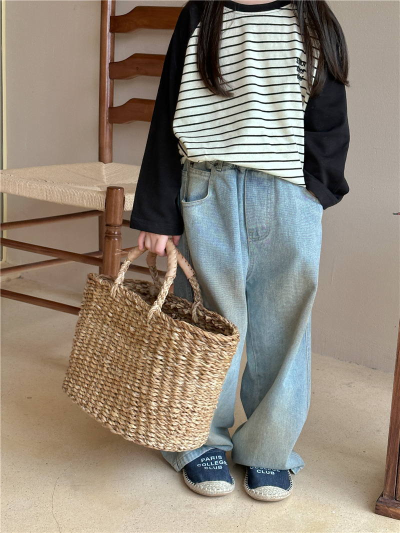 어린이용 청바지 2026 봄 신상 한국 스타일 남녀공용 스머지드 스트레이트 팬츠 아기용 다용도 캐주얼 롱팬츠 트렌디