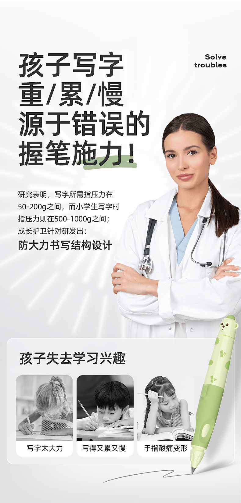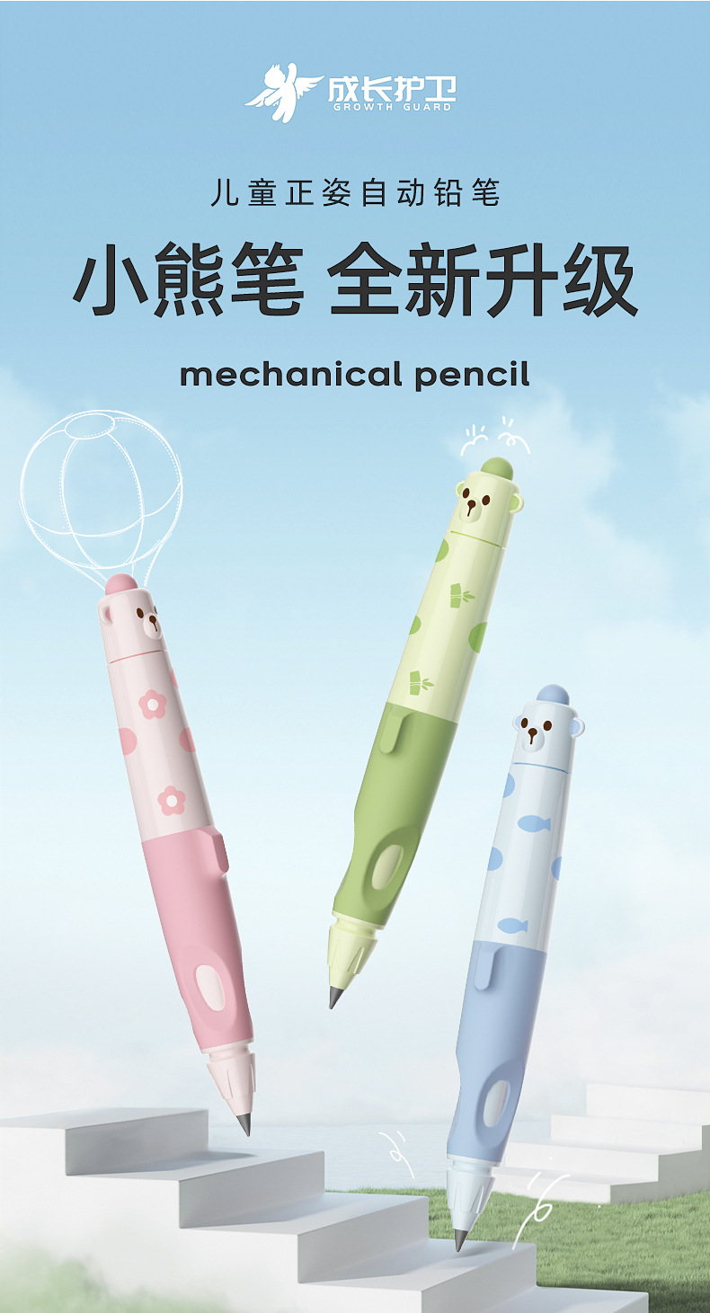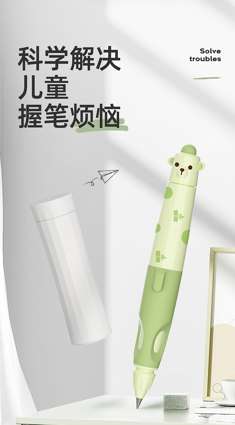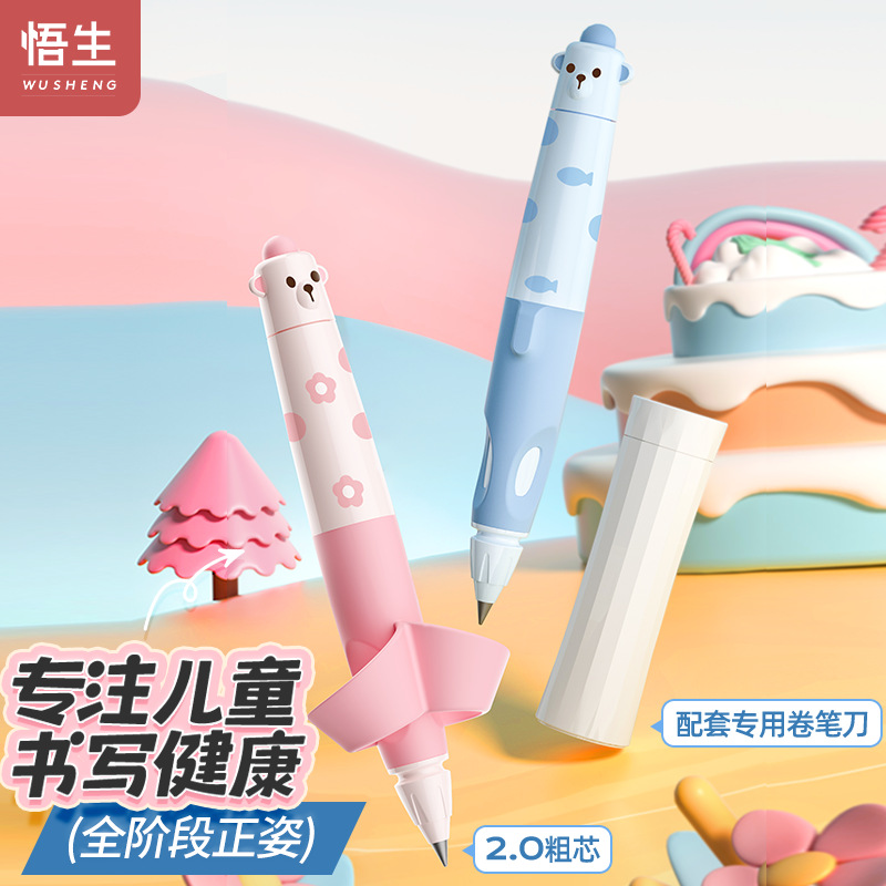 Wu Sheng 업그레이드 뚱뚱한 작은 곰 펜 유치원 아이들의 긍정적 인 펜 초등 학생 계몽 연필을위한 특수 자동 연필