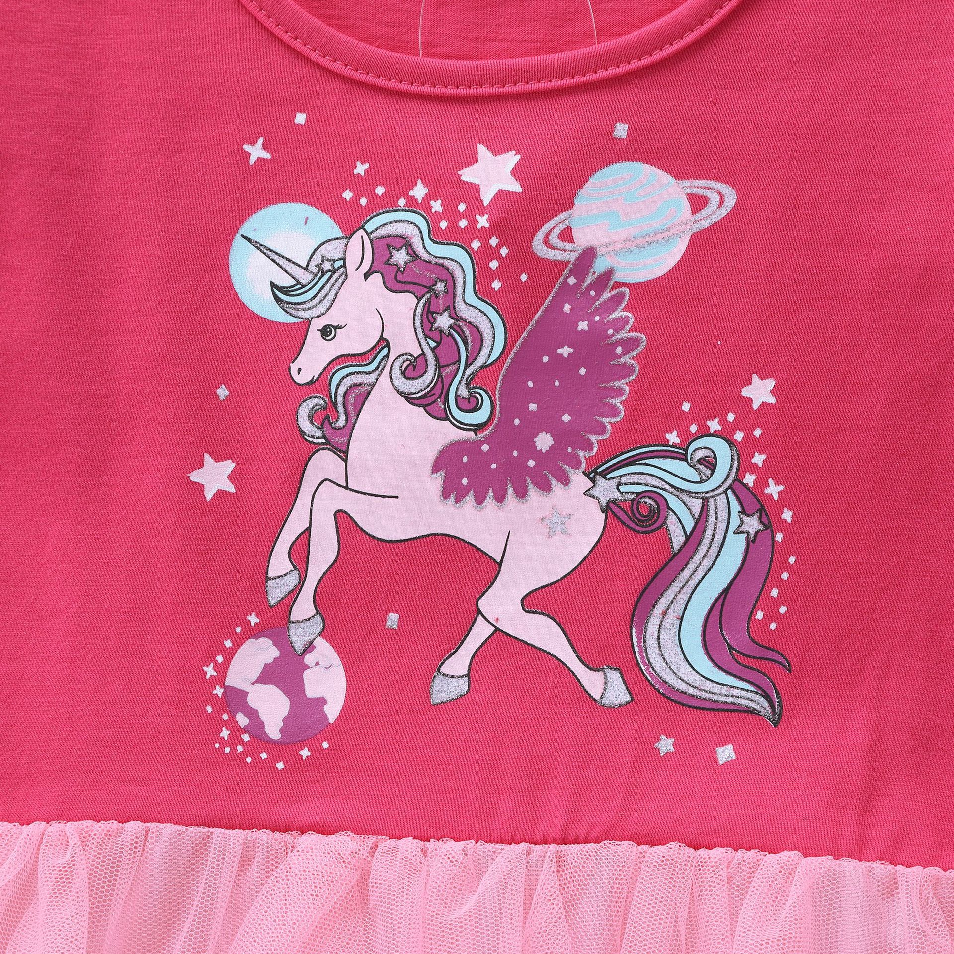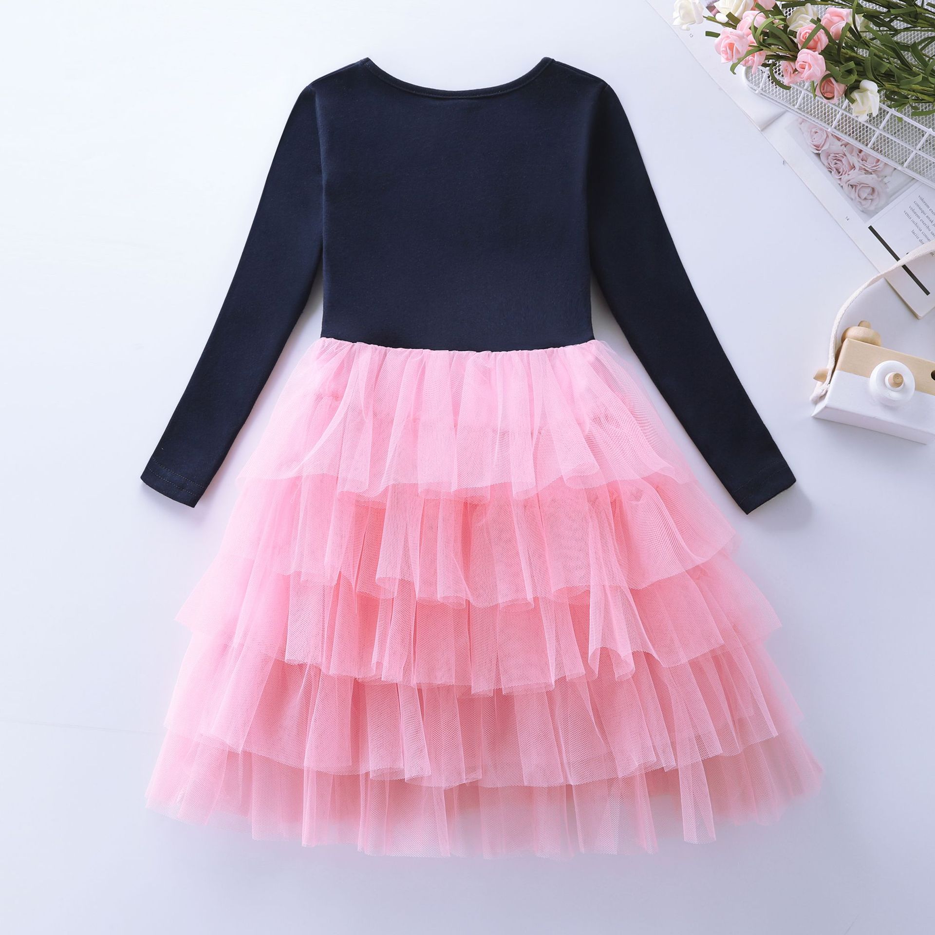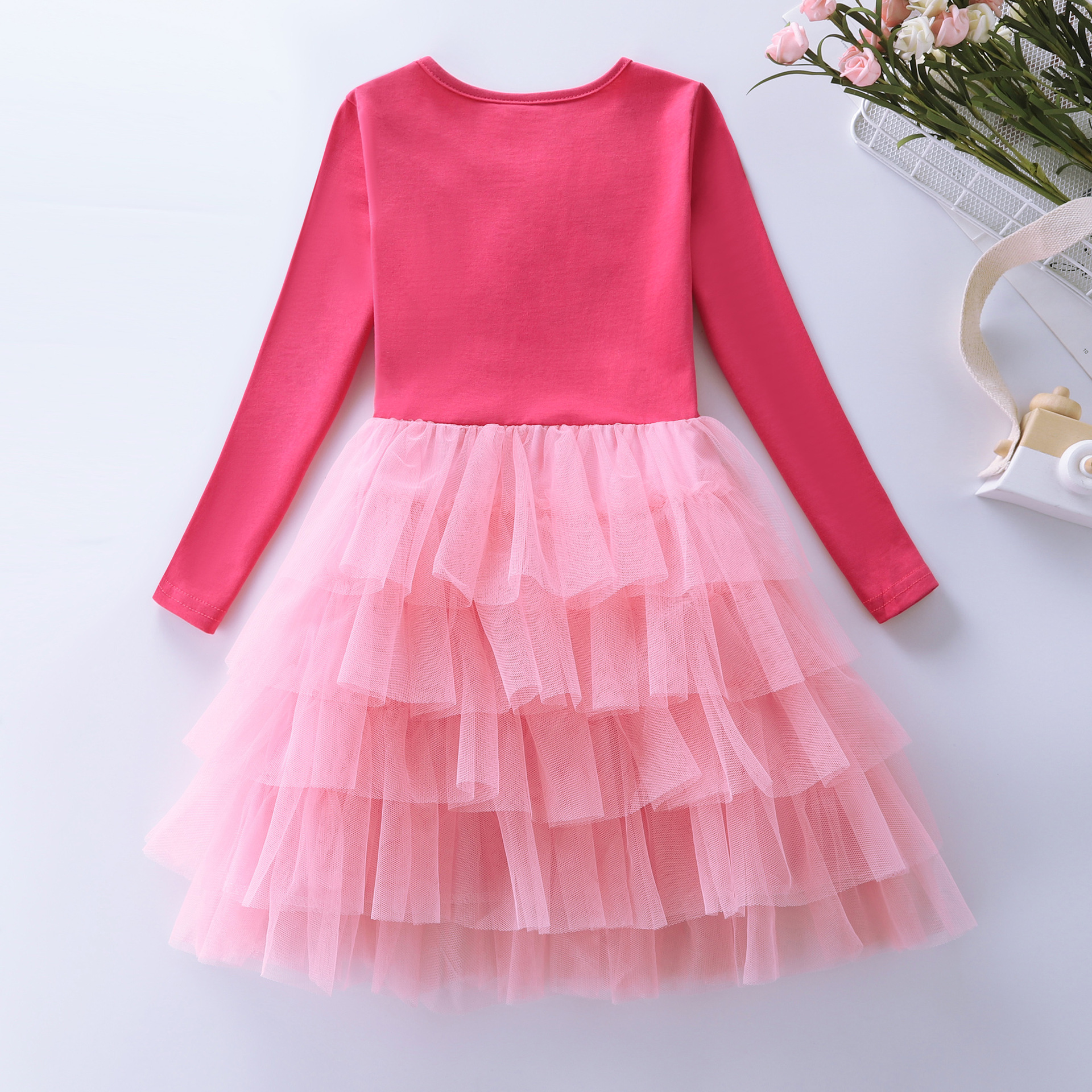 아이 소녀 긴 소매 면 만화 인쇄 유니콘 파티 공주 케이크 원피스 LH1705