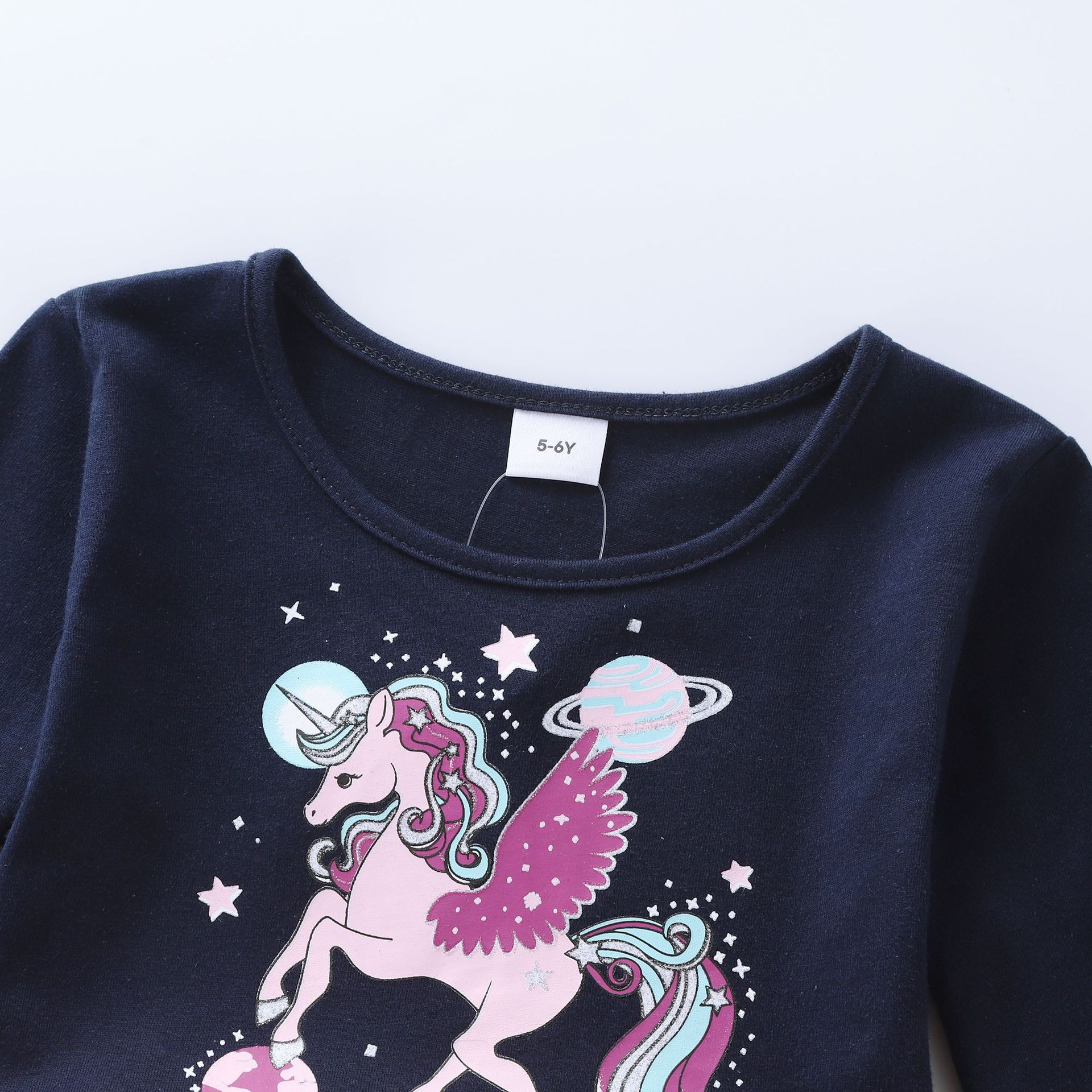 아이 소녀 긴 소매 면 만화 인쇄 유니콘 파티 공주 케이크 원피스 LH1705스토어 가기