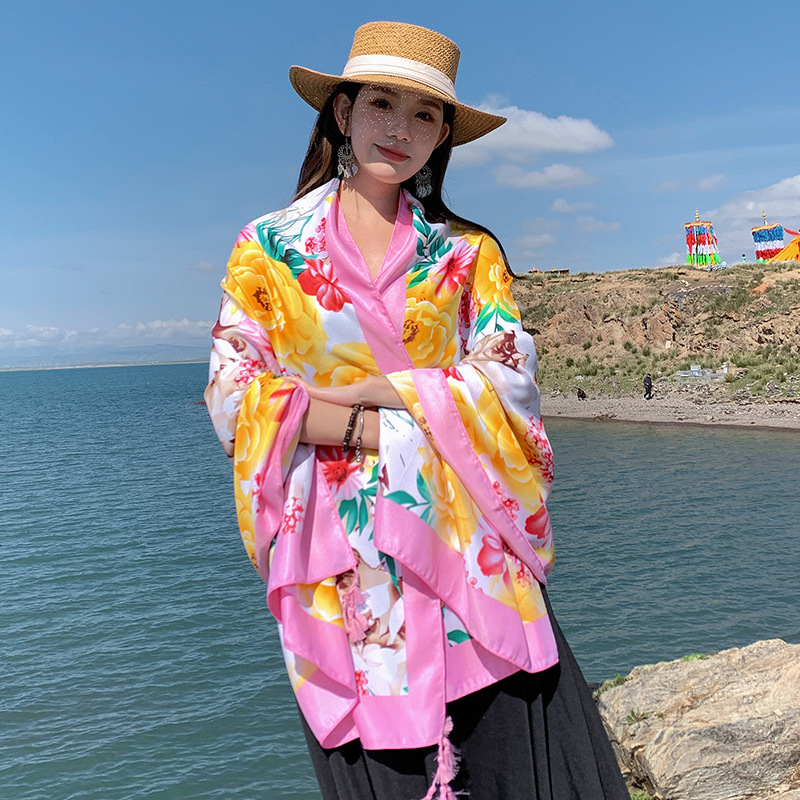 여름 차양 자외선 차단제 큰 망토 사진 관광 에스닉 스타일 케이프 스카프 해변 스카프 휴일 숄