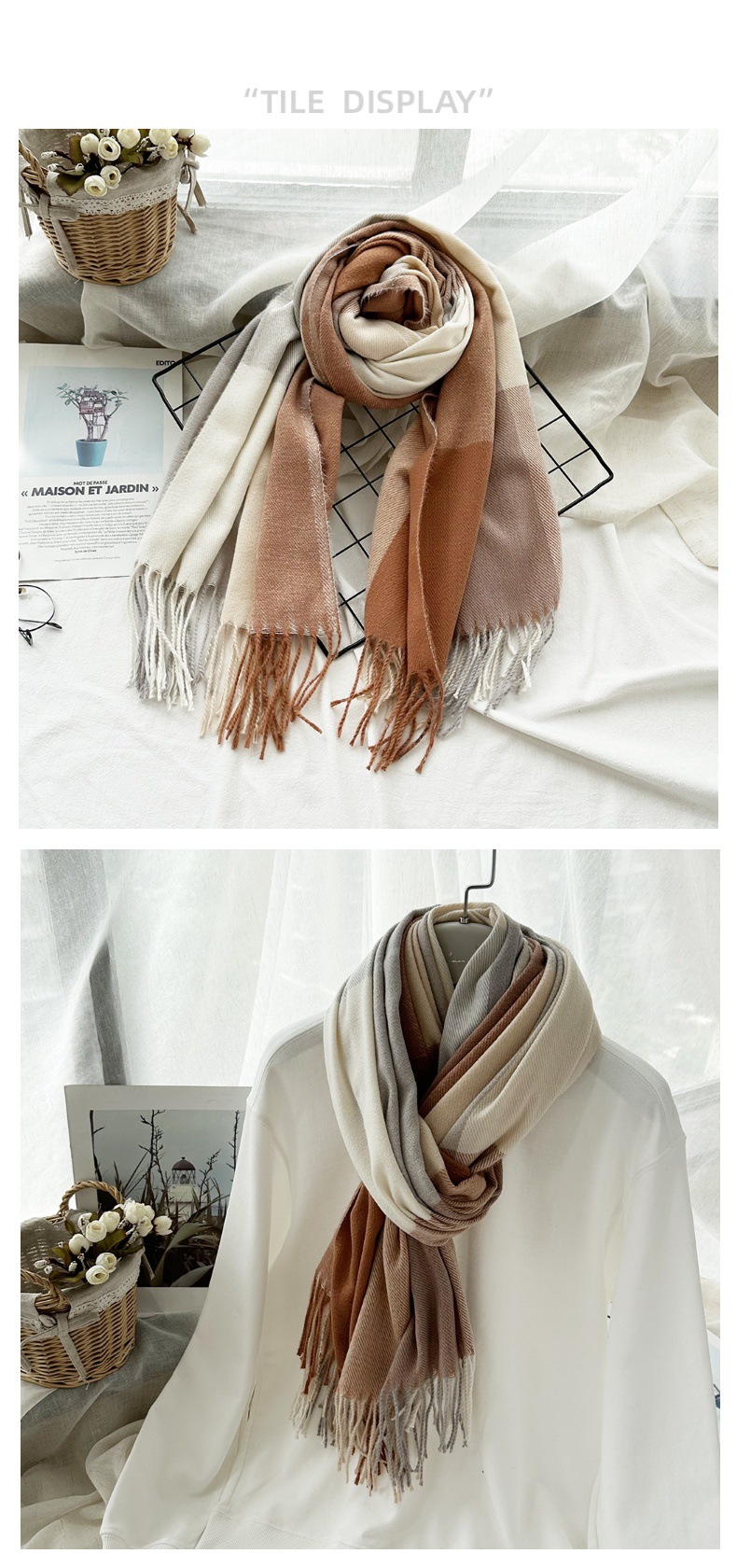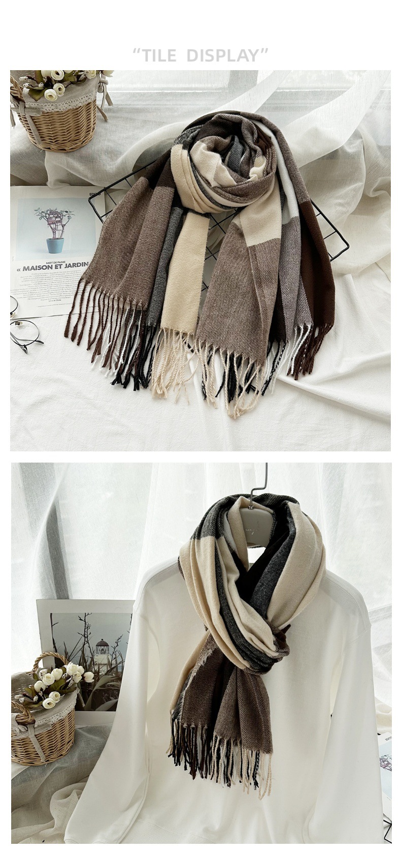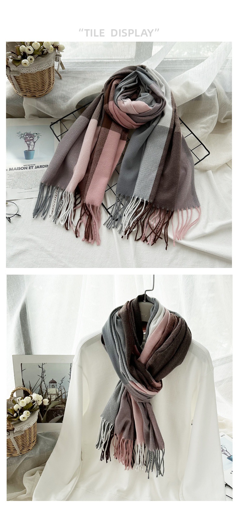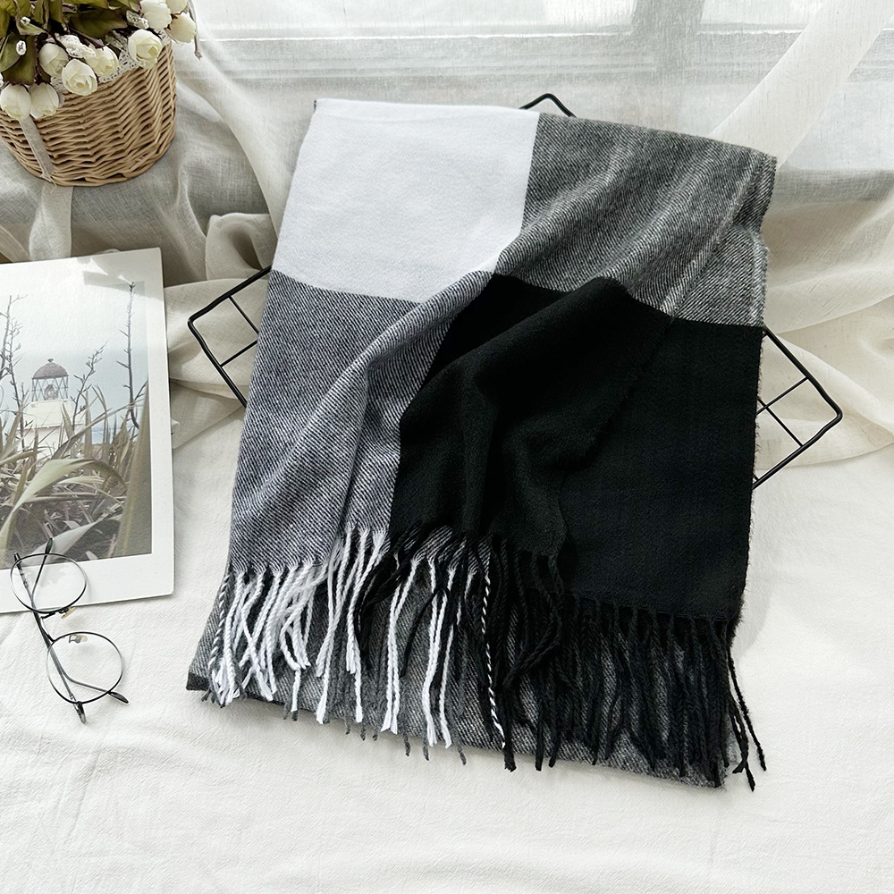 따뜻한 여성 스카프 겨울 캐시미어 컬러 매칭 격자 무늬 목도리 2023 새로운 긴 술 패션 스카프스토어 가기