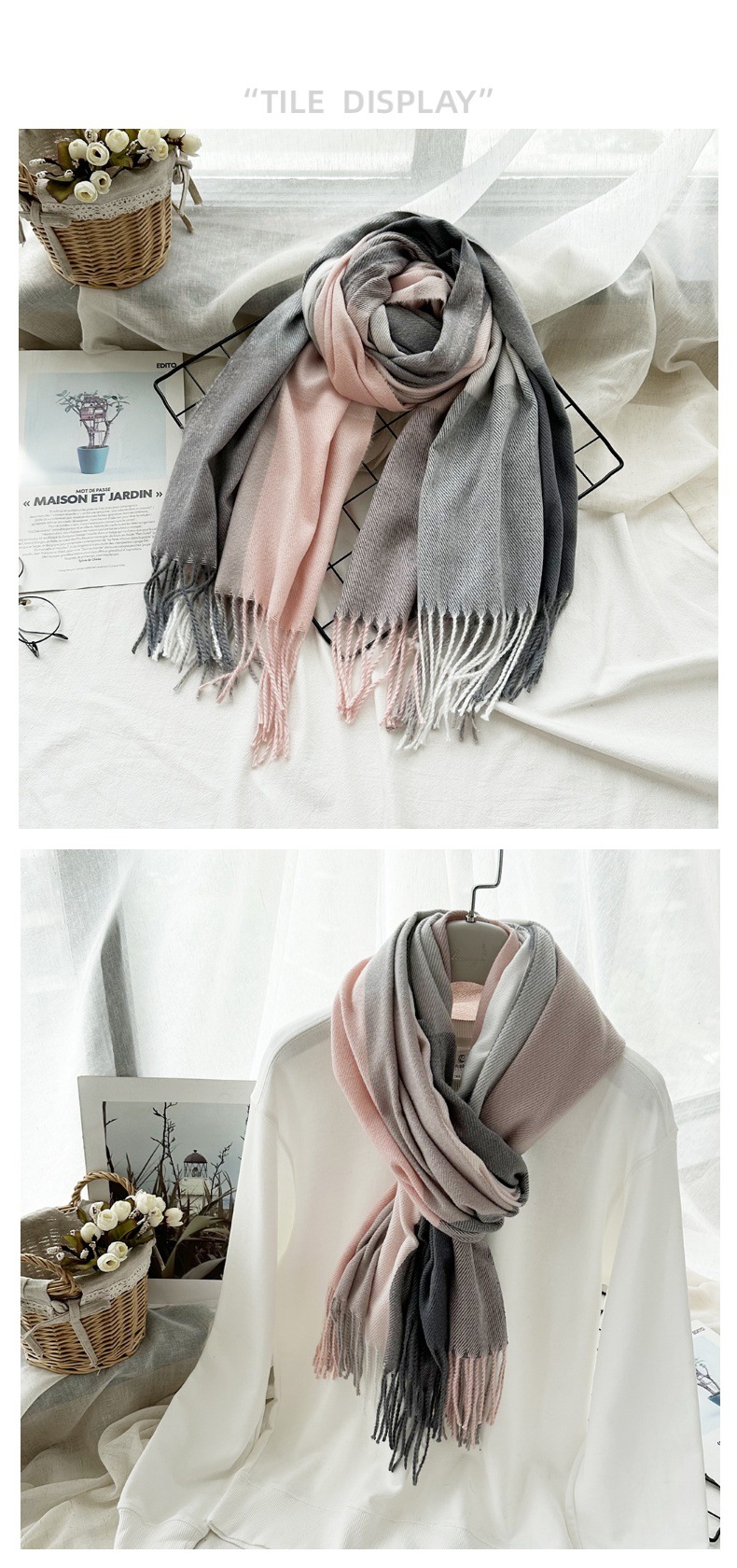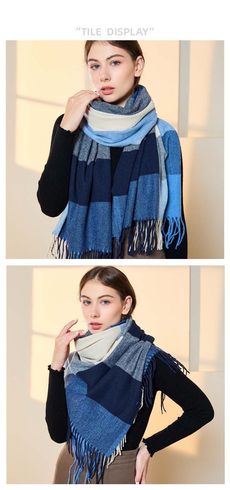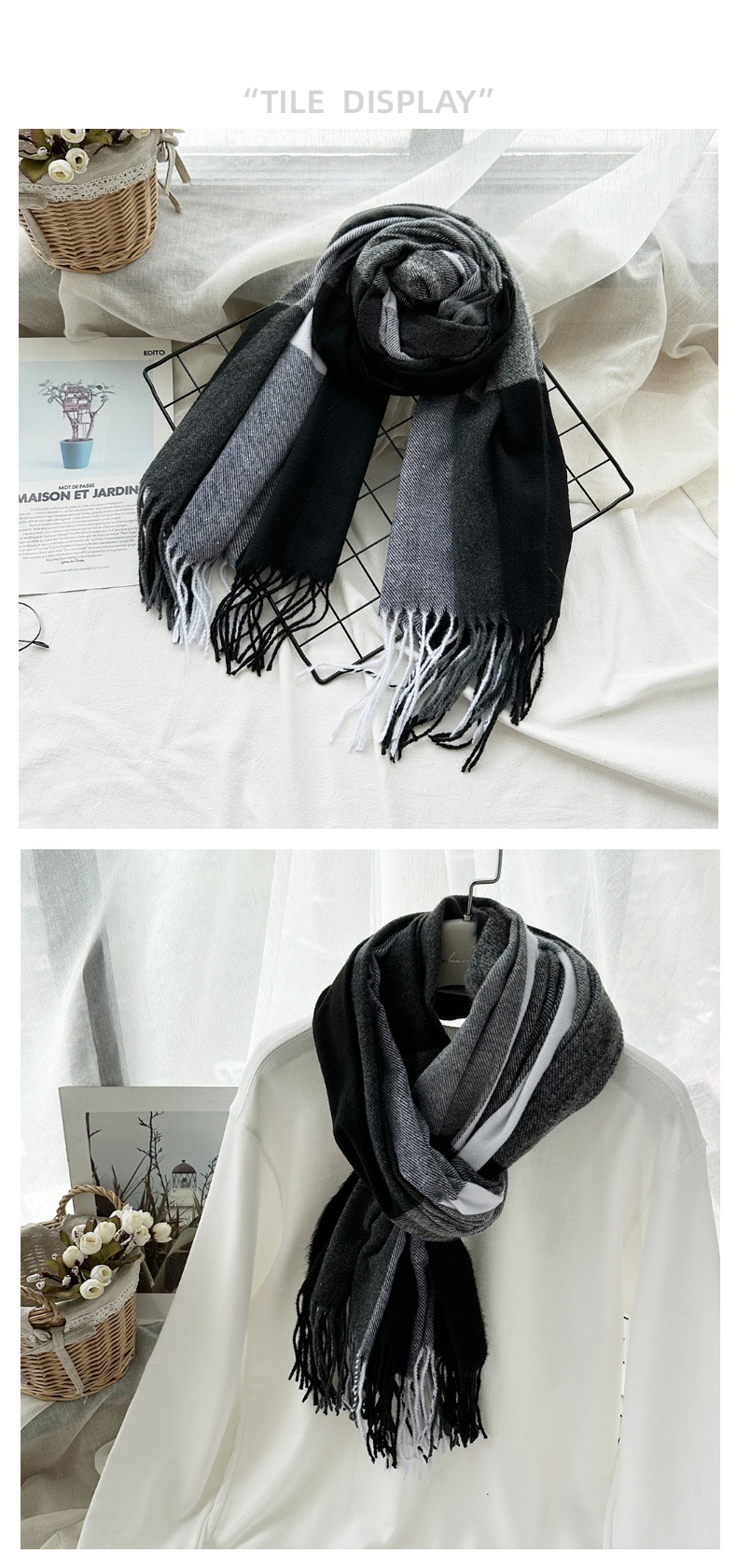 따뜻한 여성 스카프 겨울 캐시미어 컬러 매칭 격자 무늬 목도리 2023 새로운 긴 술 패션 스카프스토어 가기
