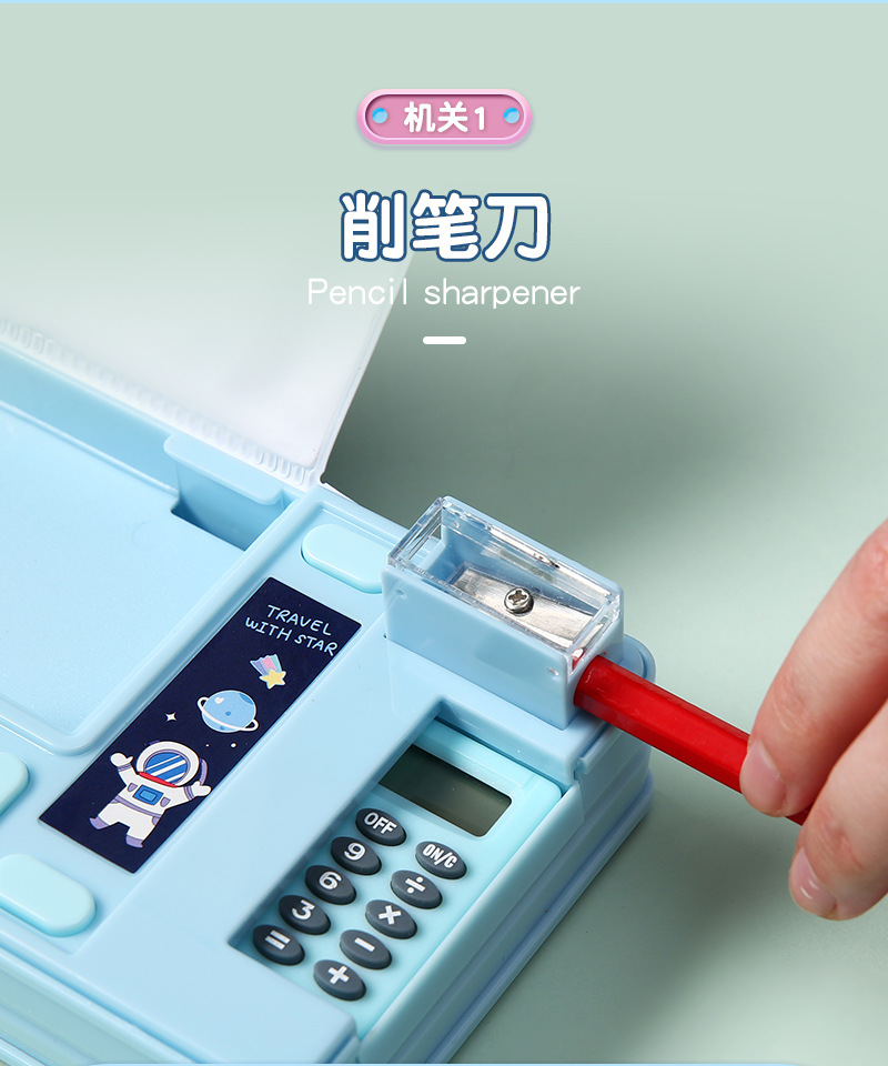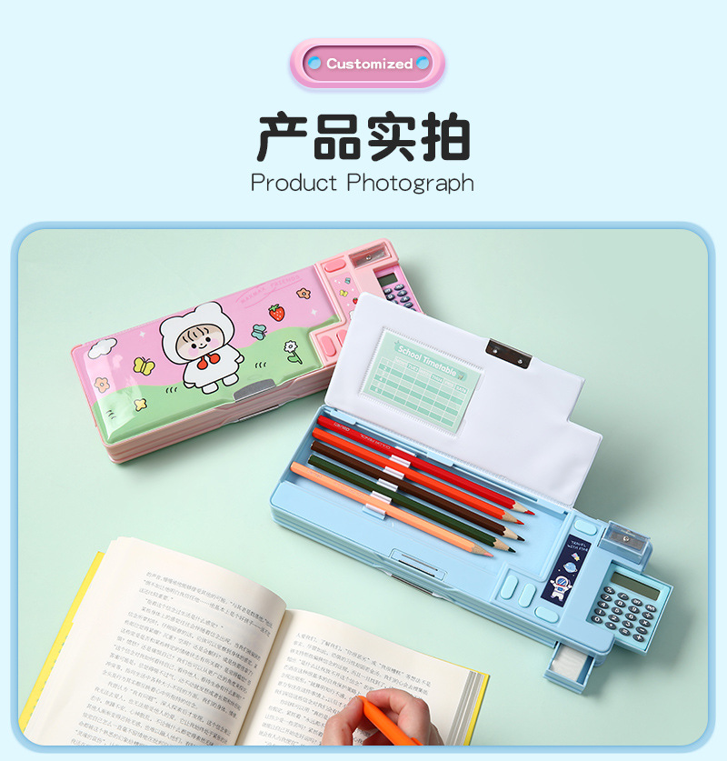 크로스 보더 아마존 크리에이티브 다기능 플라스틱 문구 상자 초등 학생 계산기가있는 양면 마그네틱 크리에이티브 연필 상자