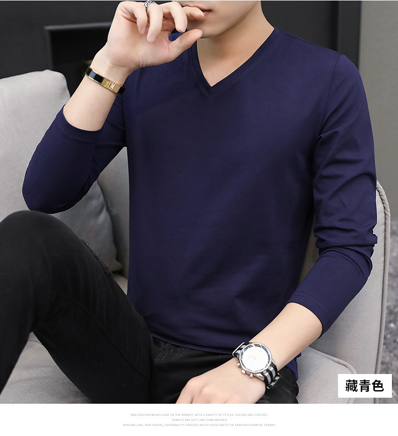 긴팔 티셔츠 남성용 V-넥 베이스 셔츠 2023 가을과 겨울 흰색 가을 옷 이너웨어 가을 옷 남성스토어 가기