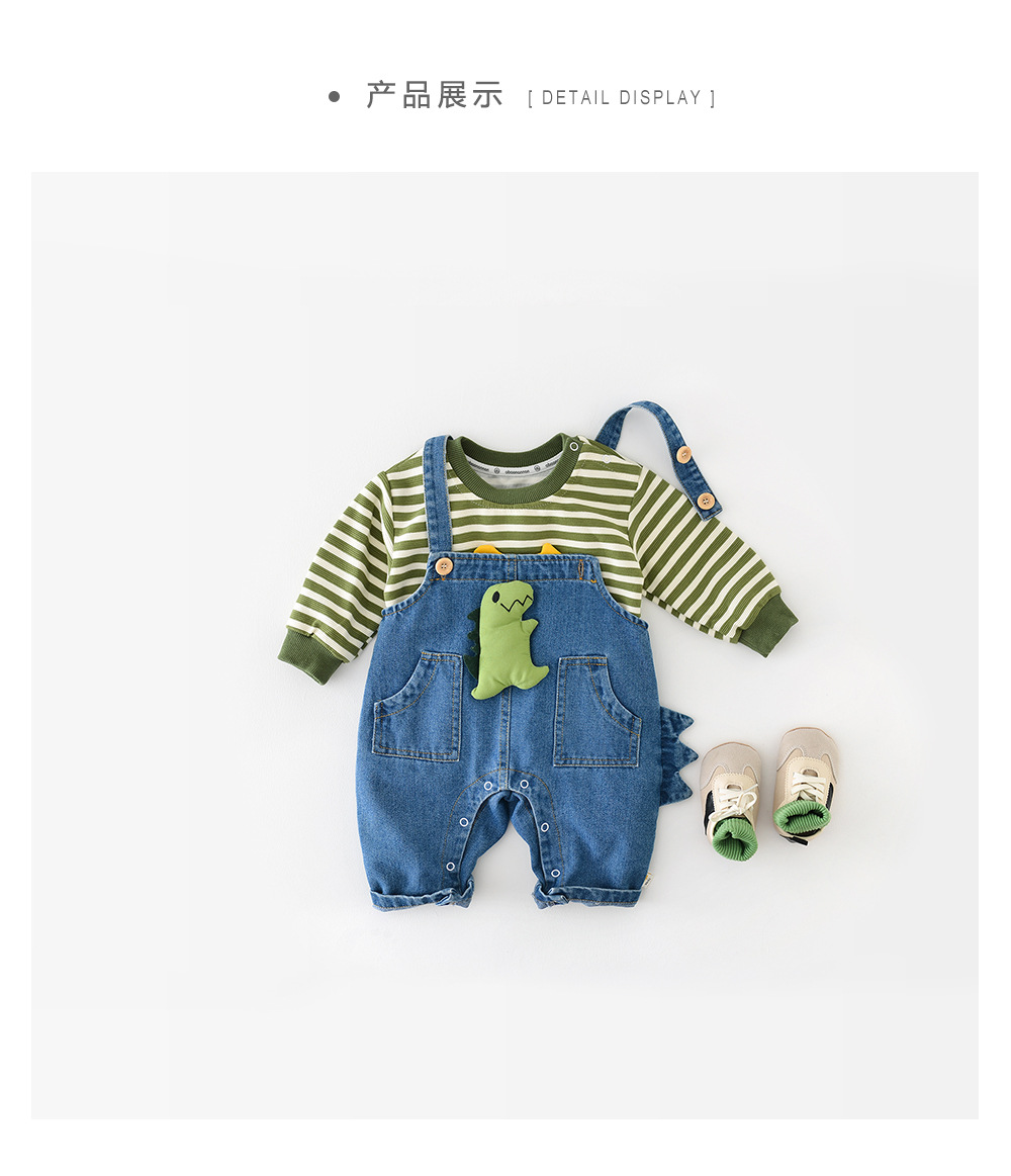 2025秋季新款儿童卡通连身衣 新生儿条纹脱卸领长袖爬服53566