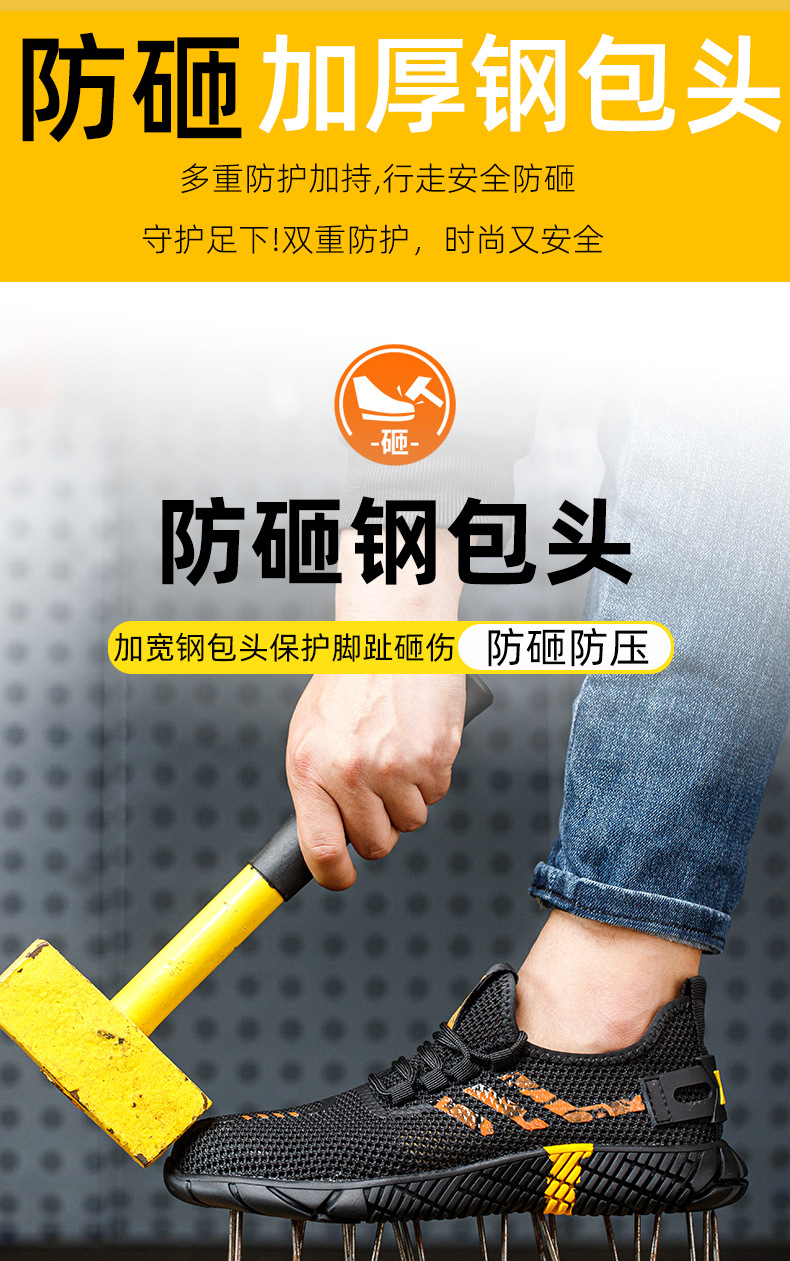 노동 보호 신발 남성 안티 스매싱 안티 벨트 스틸 플레이트 통기성 착용 방지 슬립 안티-착용 방지 냄새 방지 작업 신발 건설 현장 크로스 국경스토어 가기