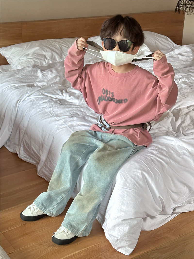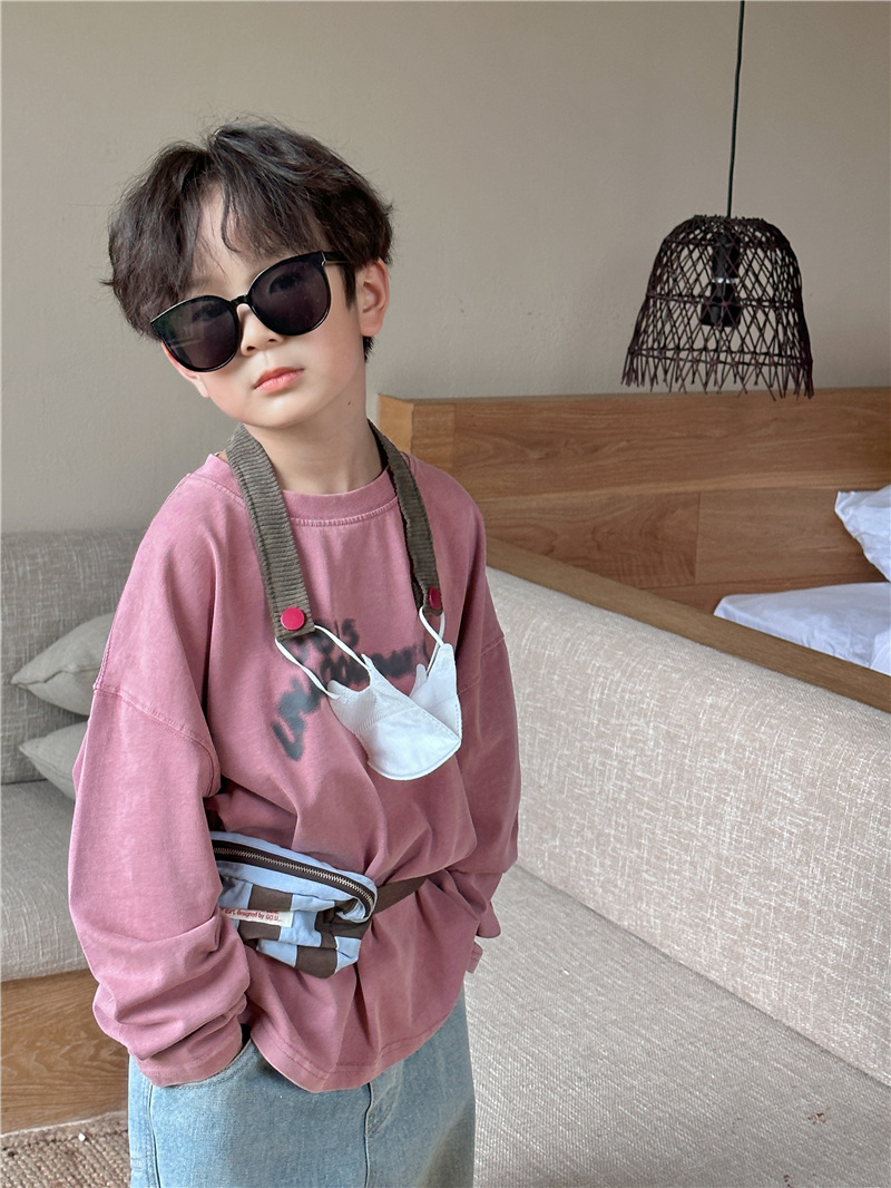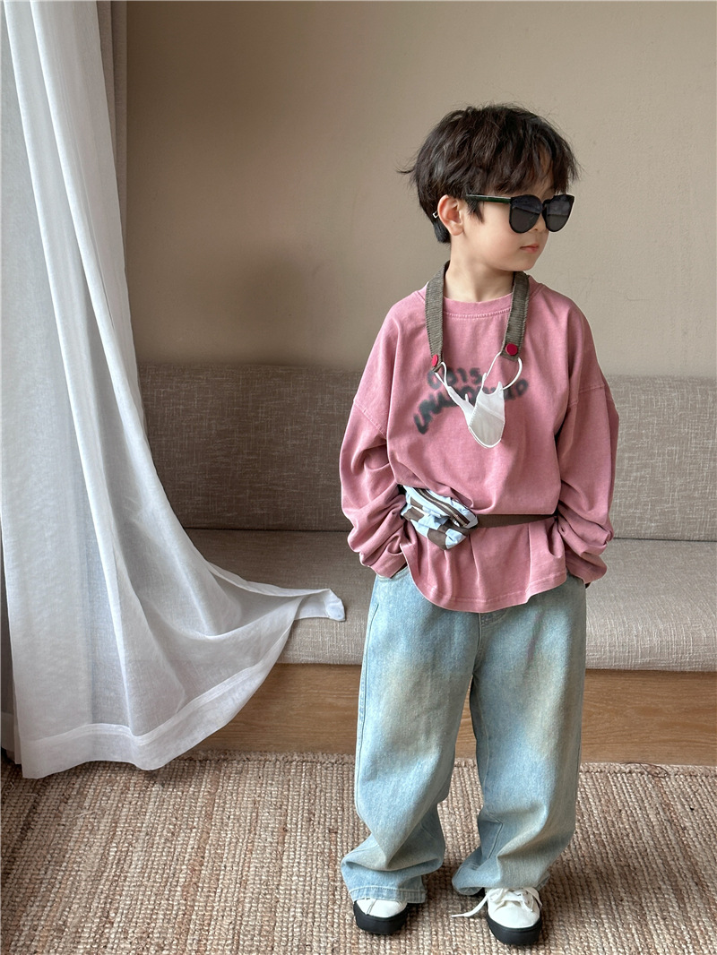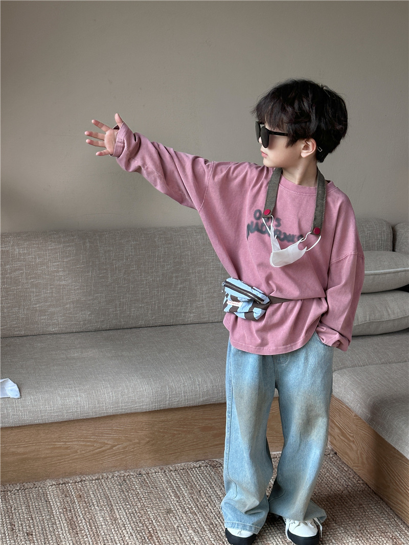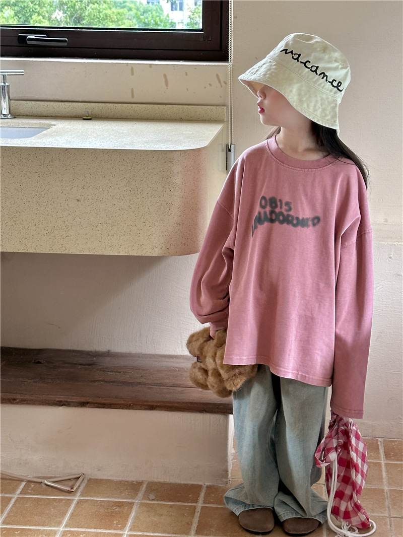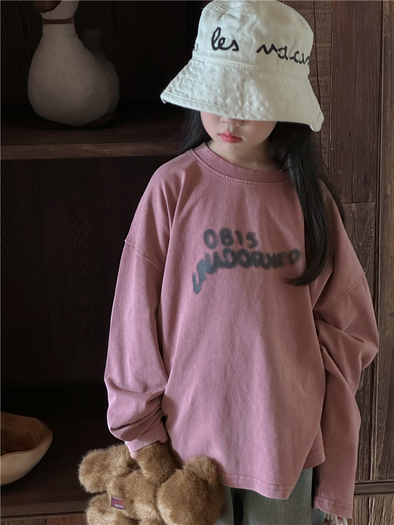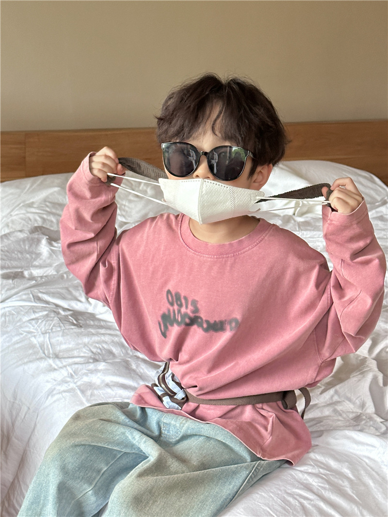 아동용 긴팔 2025 가을 신상 한국 스타일 남아용 다용도 레터링 긴팔 티셔츠 아기 라운드넥 상의 트렌디스토어 가기