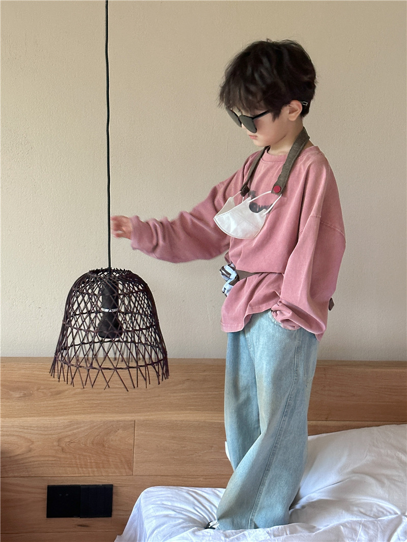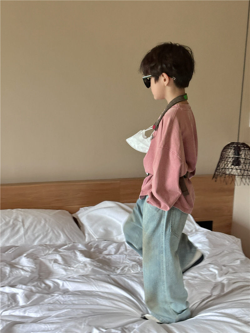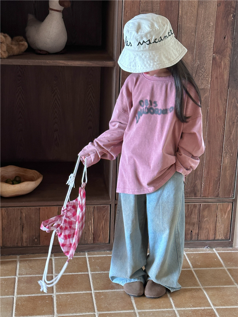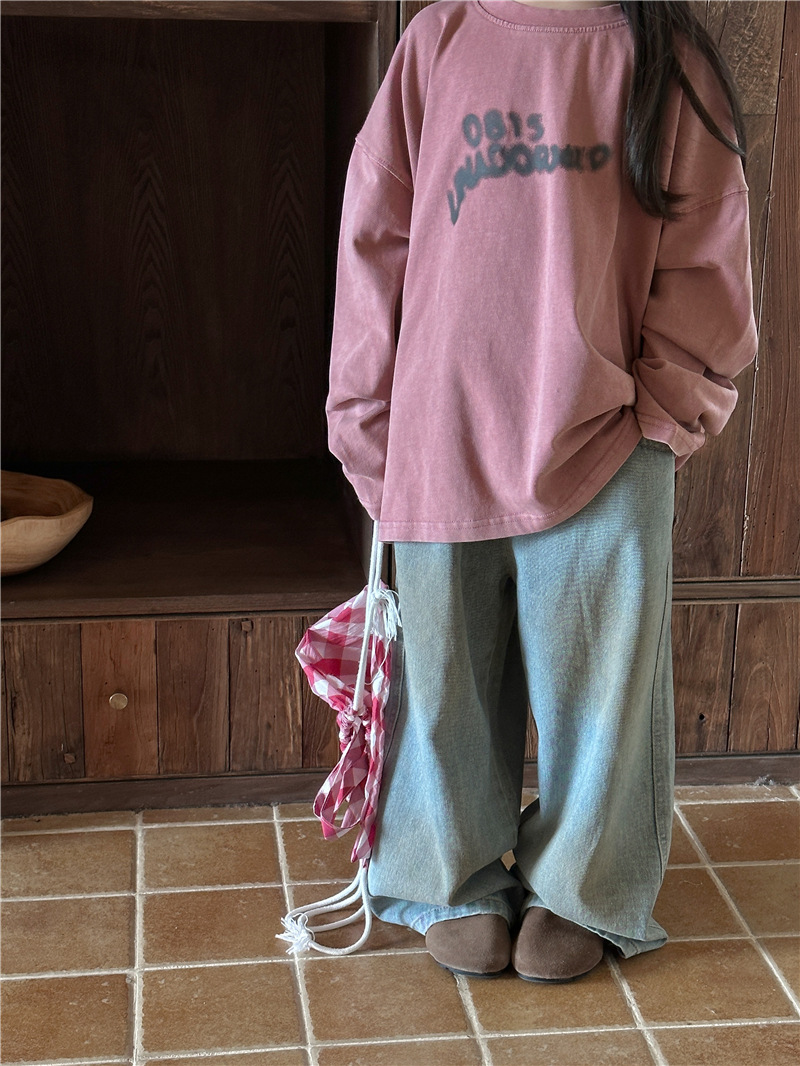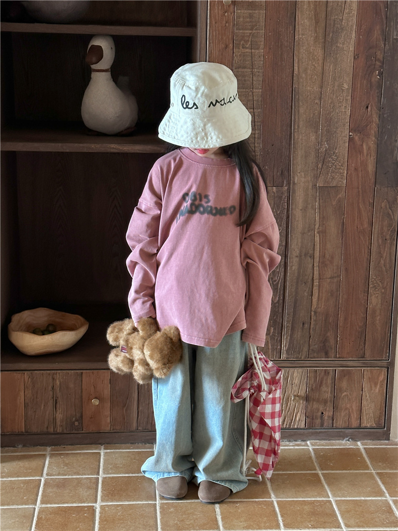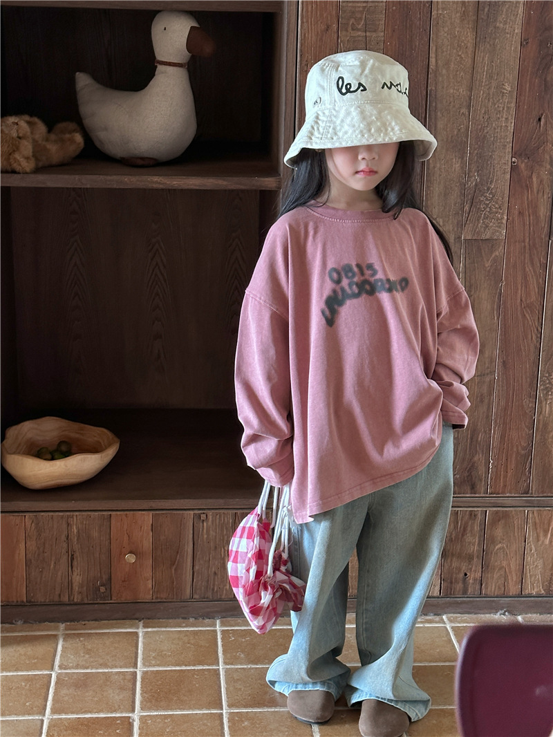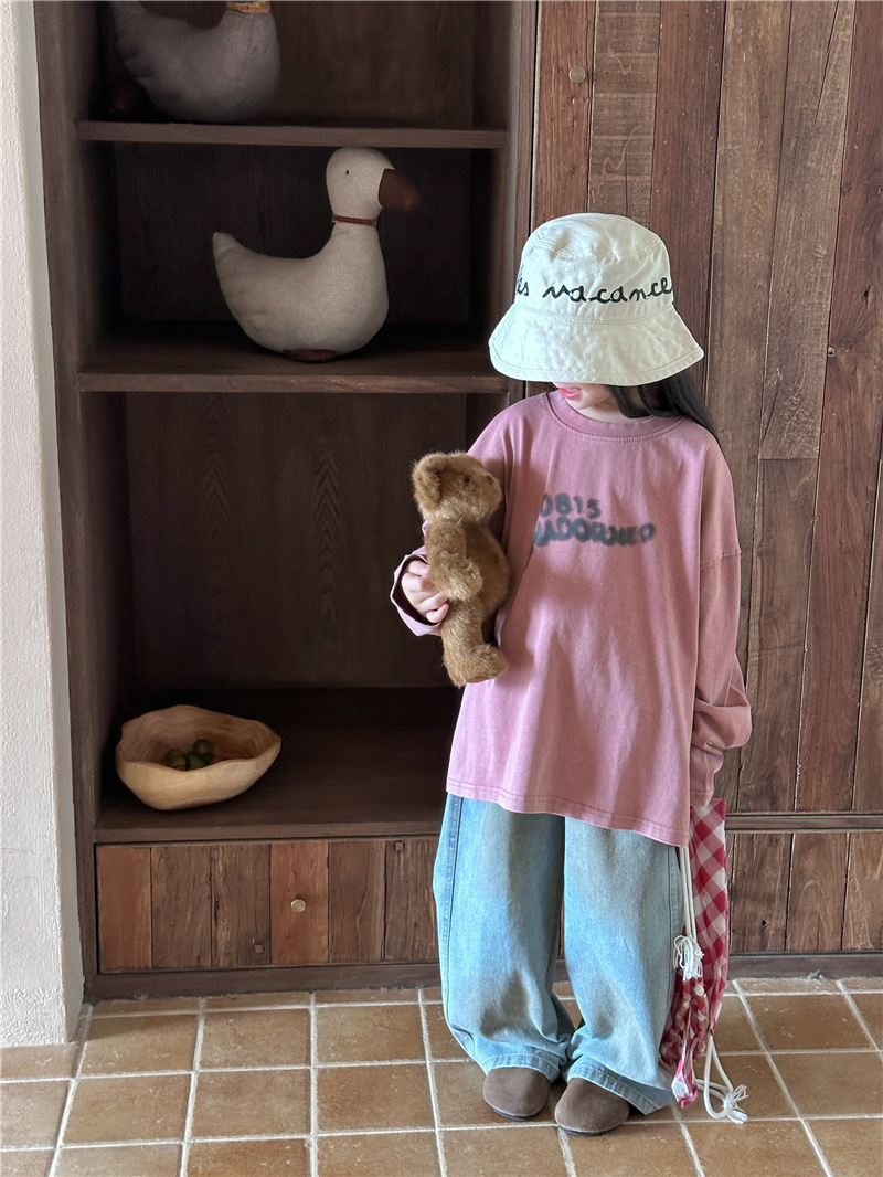 아동용 긴팔 2025 가을 신상 한국 스타일 남아용 다용도 레터링 긴팔 티셔츠 아기 라운드넥 상의 트렌디스토어 가기