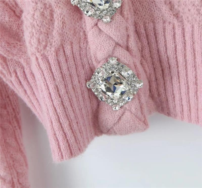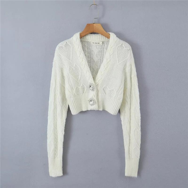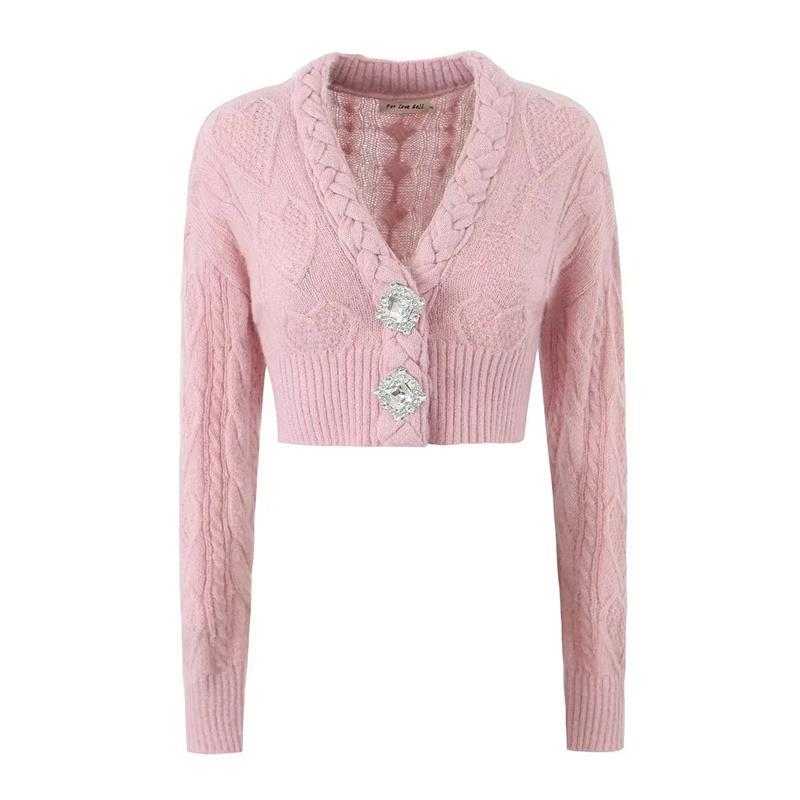 달콤하고 매운 나이 감소 다이아몬드 V-넥 트위스트 니트 가디건 가을 새로운 슬림핏 하이 웨이스트 배꼽 핫 걸 스웨터 코트스토어 가기