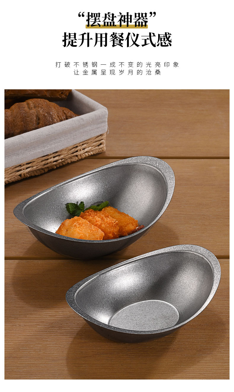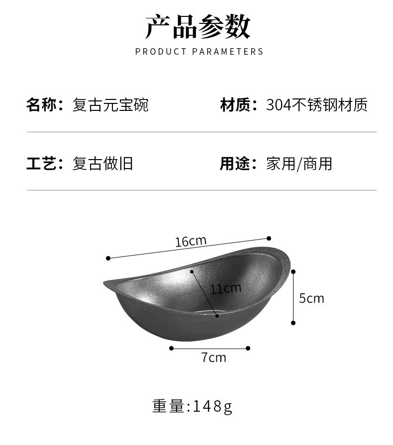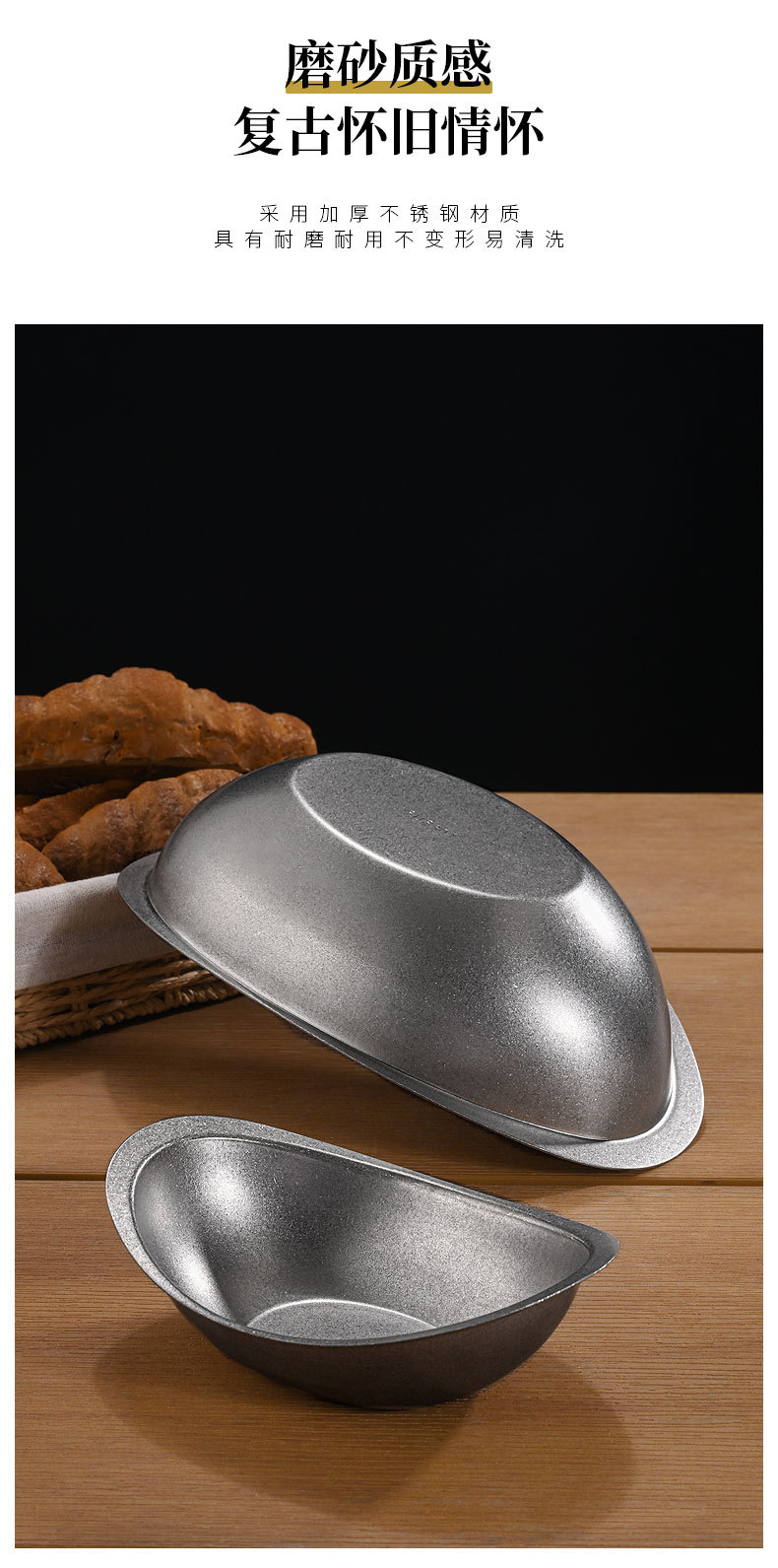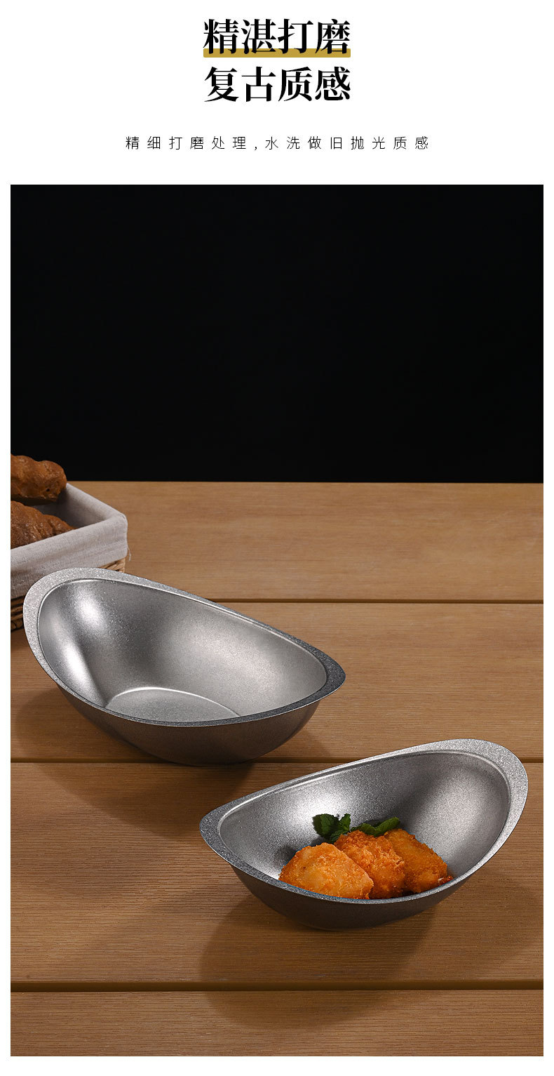 복고풍 식기 크리 에이 티브 한국어 304 스테인레스 스틸 주괴 그릇 오래된 샐러드 그릇 보트 모양의 스낵 디저트 그릇 사용자 정의스토어 가기