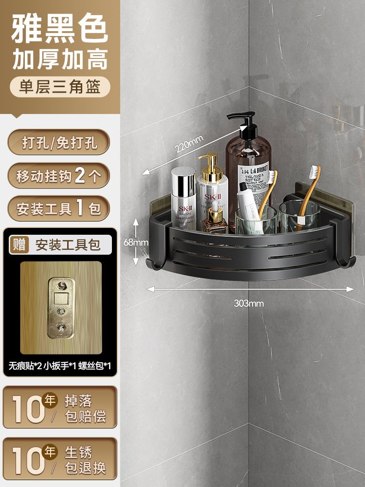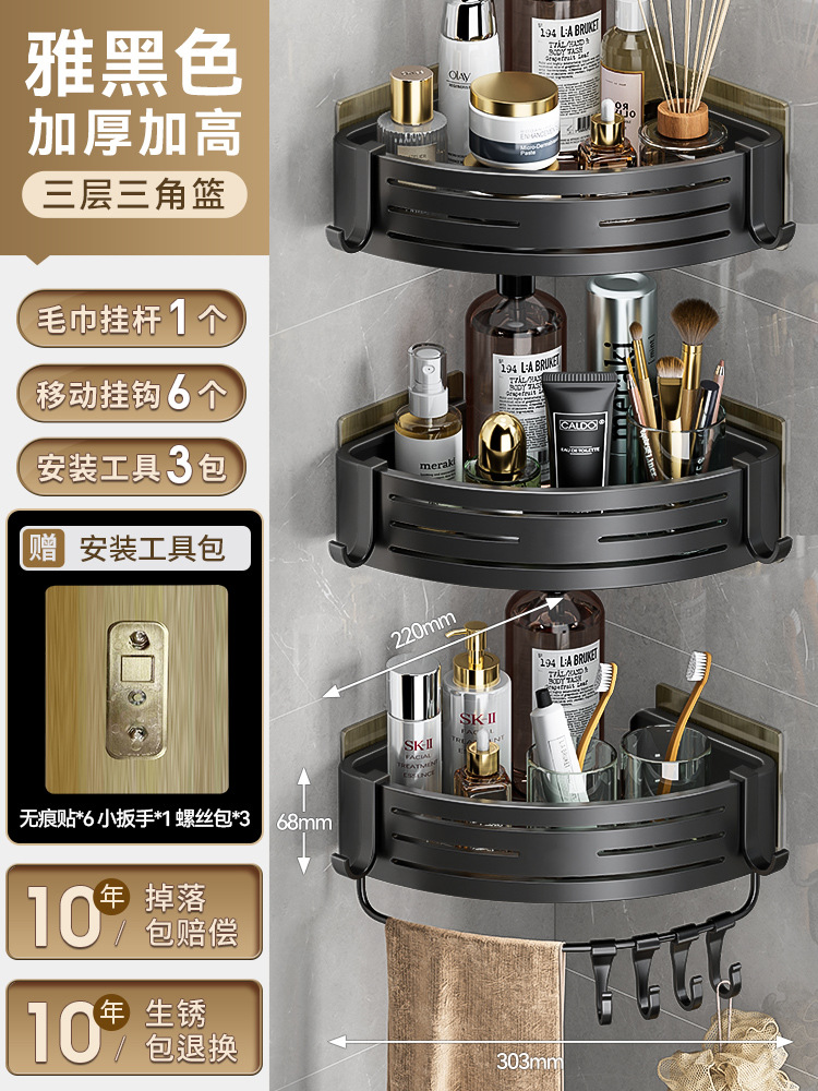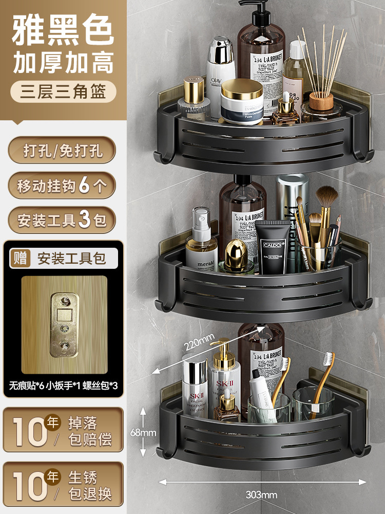 免打孔卫生间三角置物架壁挂式浴室厕所洗漱台淋浴转角收纳架子